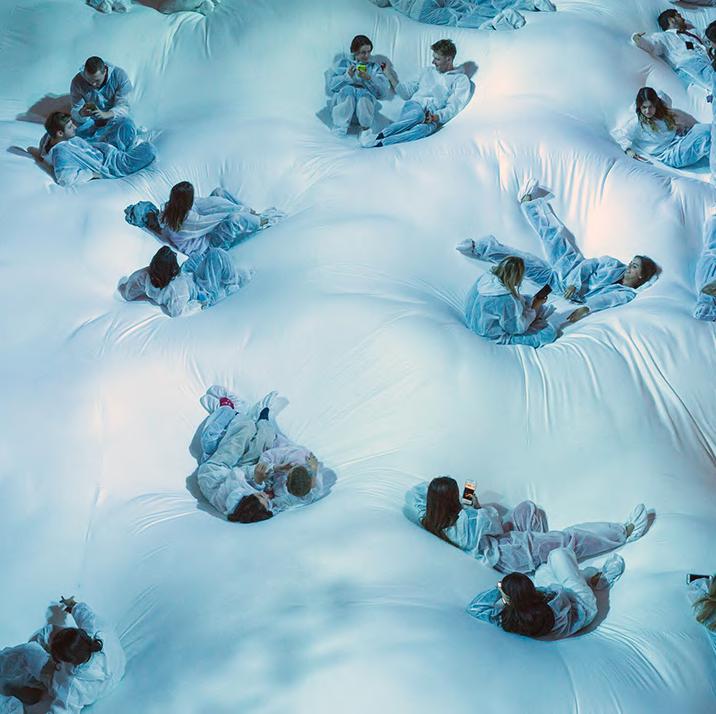 The photo was a project call "Chubby Clouds" by brand Anya Hindmarch at London Fashion Week Festival. The project is a conceptual temporary installation for the imagination of sleeping. Tourist are also asked to change into protective white boilersuits before entering the project, so that creating this interesting view.