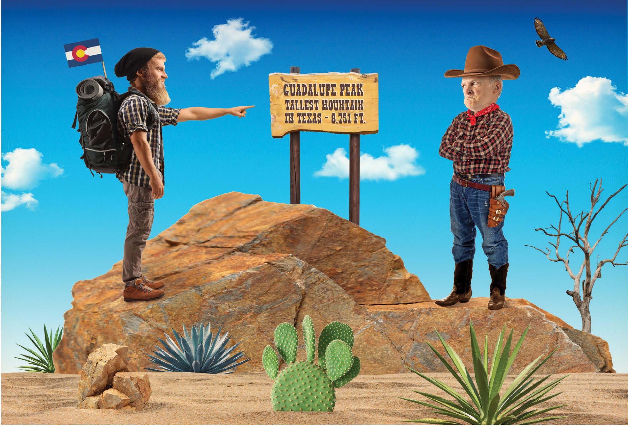 Tick off a Texan: After reaching Gua dalupe Peak via its namesake trail (8.5 miles round trip with 3,000 feet of ele vation gain), read the historical marker planted there lauding the mountain as Texas’ tallest, at 8,751 feet. Then—once you’re sure there’s a Texan around to hear you—say, “Huh. I thought every thing was bigger in Texas.”