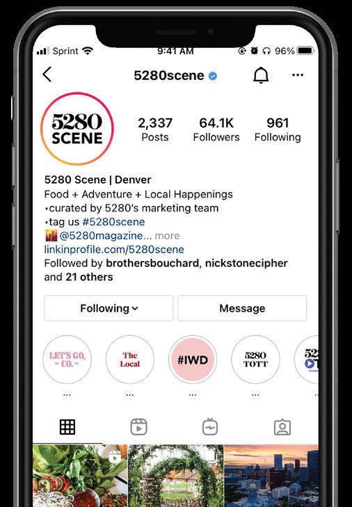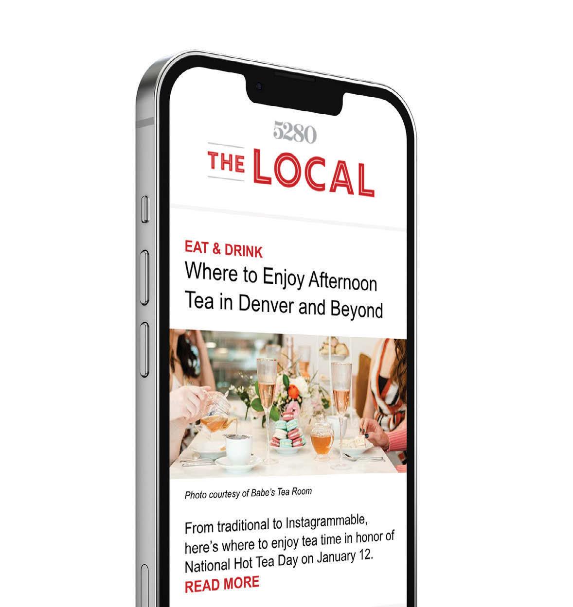 5280 offers businesses the most costeffective way to reach Denver’s upscale consumers. Information about advertising is available on the web at 5280.com/ advertising. Call 303-832-5280 to request a printed media kit.