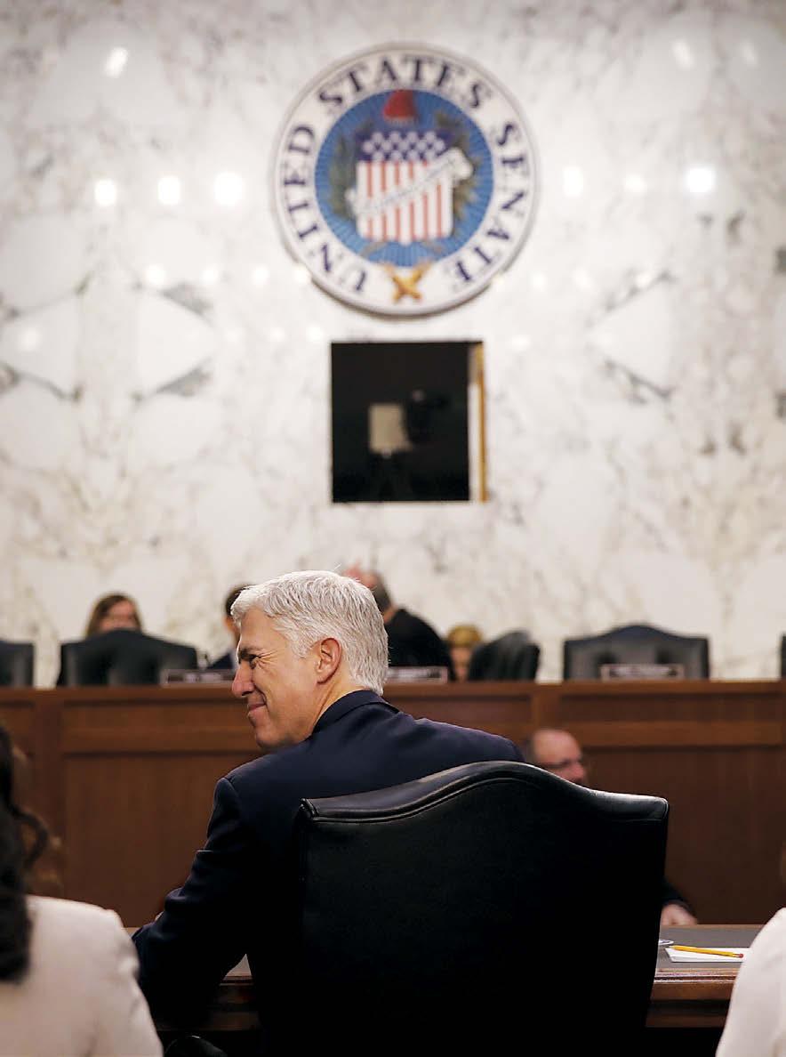 Or maybe Gorsuch will be guided by the testimony he gave during his confirmation hearing, when then U.S. Senator Al Fran ken of Minnesota suggested Gorsuch would do the president’s bidding: “I do not appre ciate when people characterize me, as I am sure you do not appreciate it when people characterize you,” Gorsuch said, momen tarily letting frustration bubble through his composure. “I like to speak for myself. I am a judge. I am my own man.” m