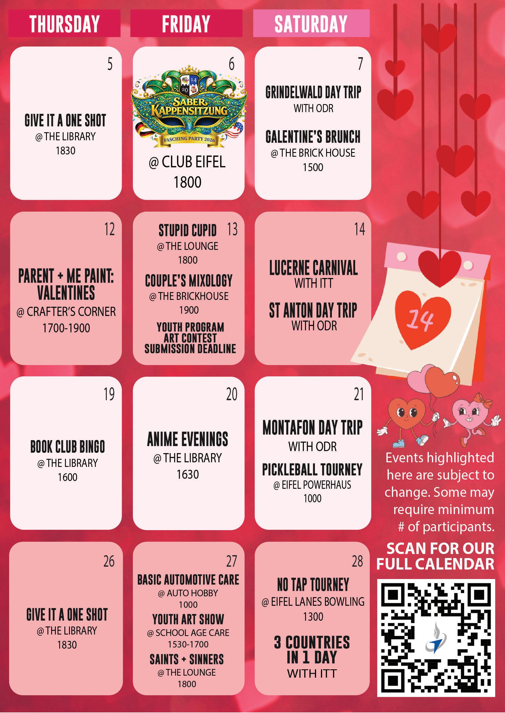 Club Eifel members & their families bowl free! Just show your club membership card at the desk.