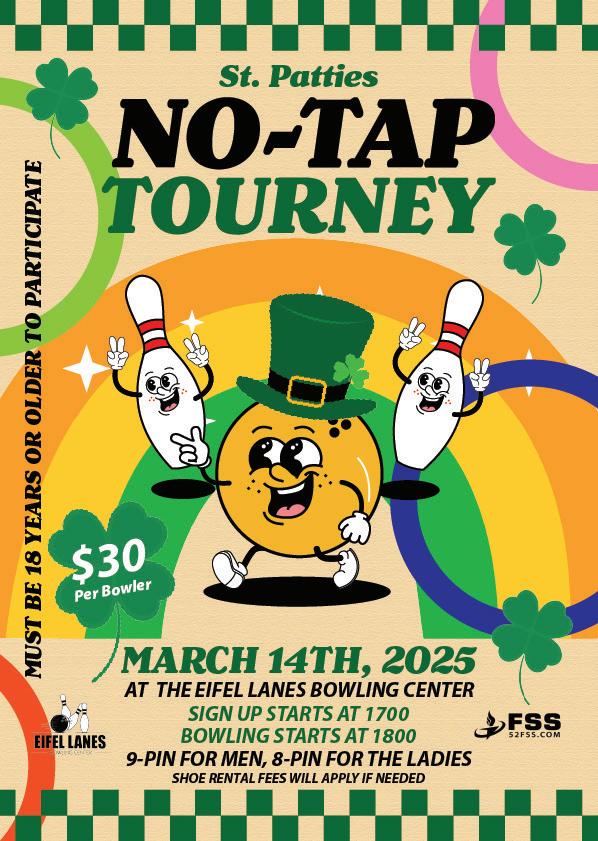 Bring your wingman bowling for lunch and enjoy two free games each! Simply show your receipt from Papa Joe’s or Taco Bell for your same-day lunch purchase. Available Monday through Friday from 1100 to 1500 (Excluding U.S. Holidays & Family Days).