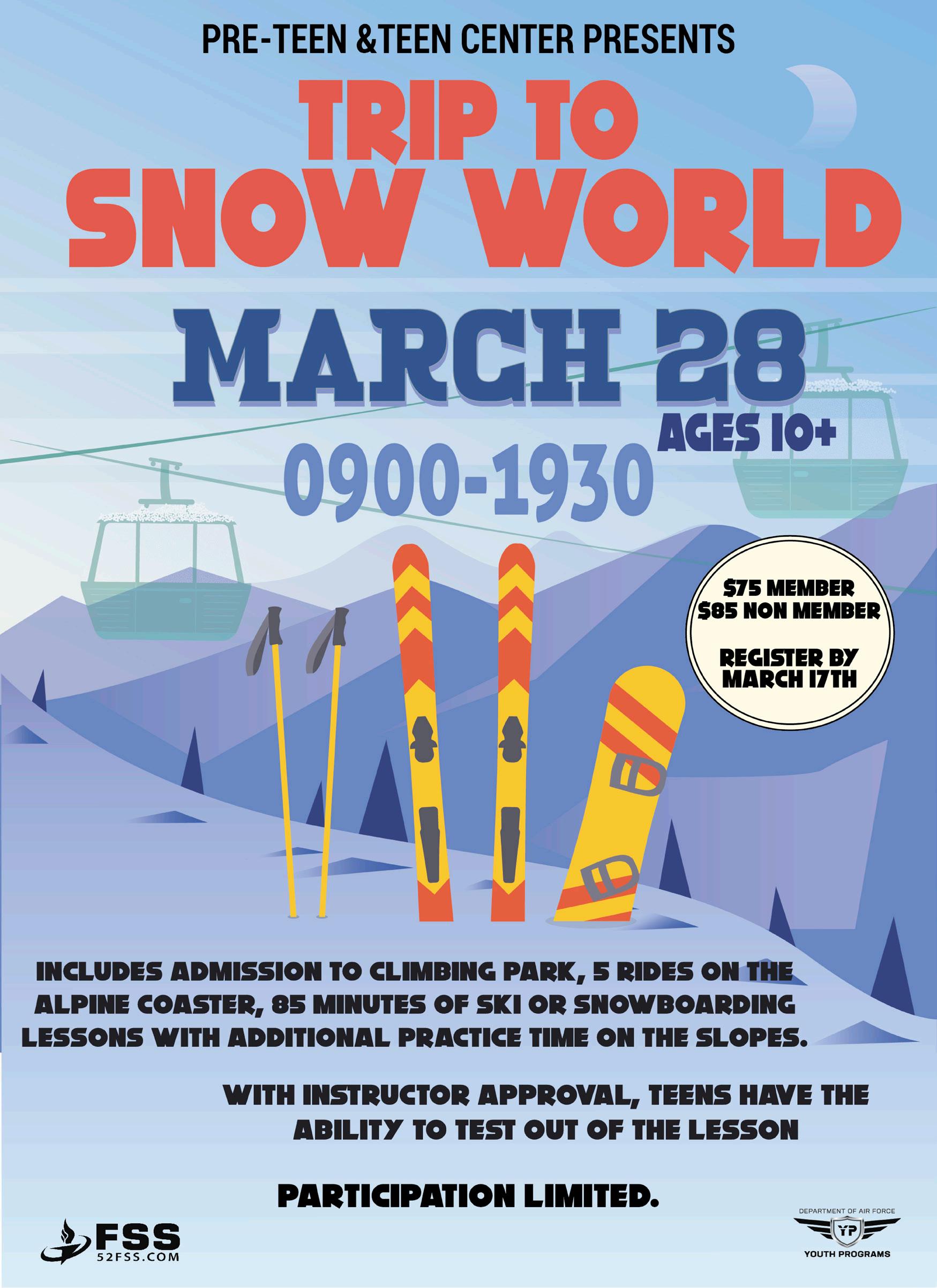 MARCH 28 | SNOW WORLD FIELD TRIP (Teen center will be closed for field trip)