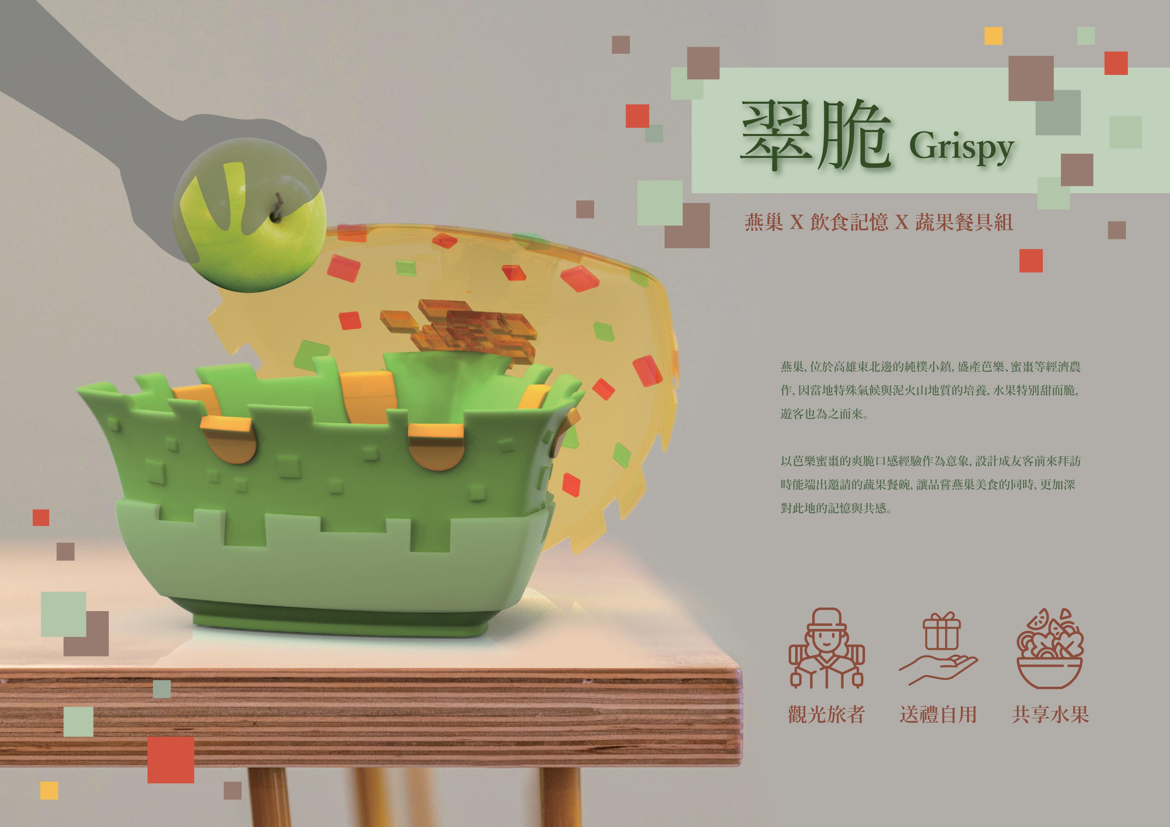 於高師大工業設計系學習產品設計,有建築設計經驗, 在平面、產品、空間設計皆涉略,擅長平面設計、空間