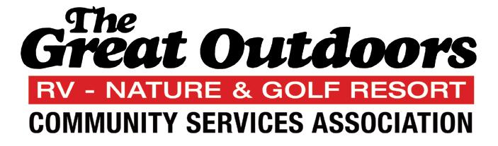 The Great Outdoors Community Services Association (CSA) publishes The Happenings for the information and enjoyment of its members and their guests. The CSA assumes no liability for any information, omission or inadvertent error contained herein; or injury or damage resulting from the use of this information. The ideas, opinions, suggestions, classified ads, and commercial ads are to be used at the reader’s discretion. The CSA and group or individual contributors do not signify any approval, authentication, or endorsement by inclusion in this publication. For advertising rates or editorial information, contact The Happenings: Happenings@tgocsa.com