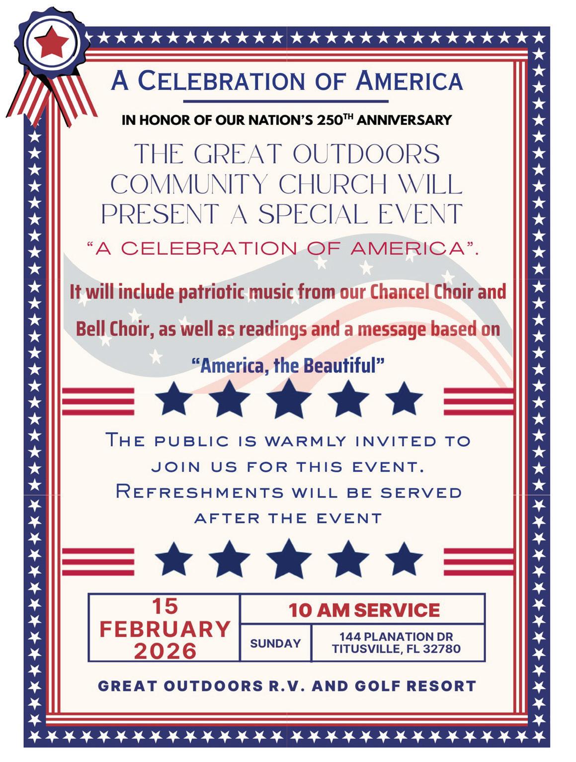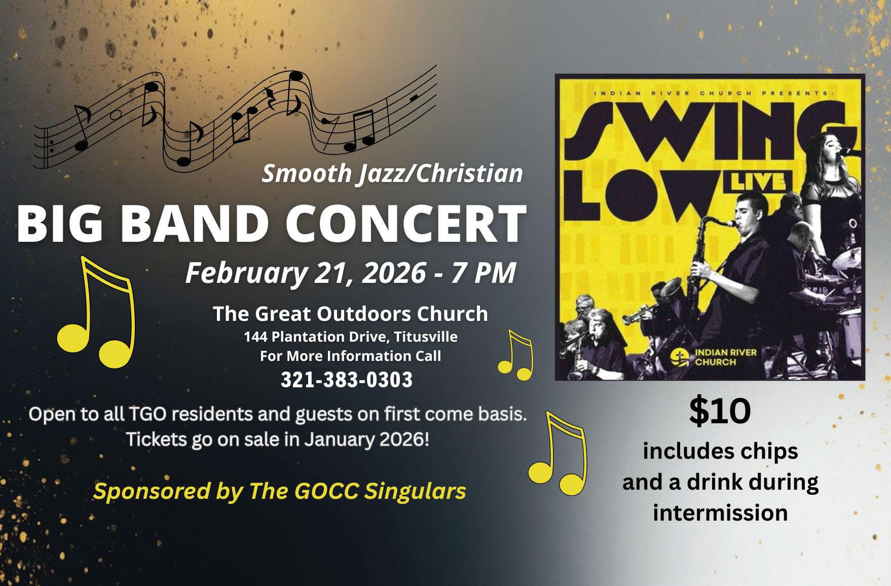 In closing, Happy birthday to Cam Pelletier! Cam turned 104 on January 18, and the TGO Community Church turned out to help him celebrate after Sunday’s service. You’ll find a special tribute to Cam and his service to our country on page 28. The Activities Committee has also released the Concert Series lineup for 2026-2027. You can read more about the performers, and the work that goes into bringing these events to TGO, in our cover story on Linda Utz, starting on page 54.