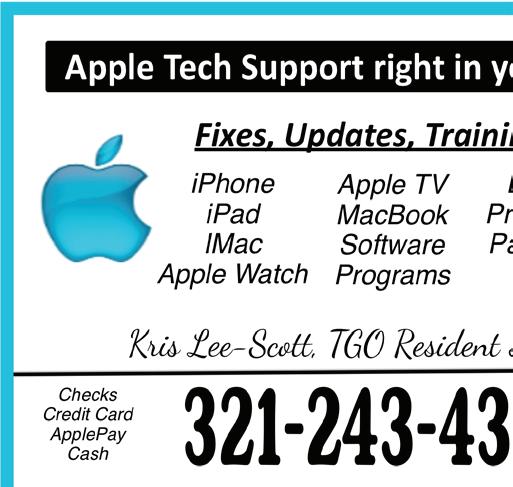 The Great Outdoors Community Services Association (CSA) publishes The Happenings 24 issues a year (one issue only in July and August). This magazine is for the information and enjoyment of the TGO community and their guests. The CSA assumes no liability for any information, omission or inadvertent error contained herein; or injury or damage resulting from the use of this information. The ideas, opinions, suggestions, classified ads, and commercial ads are to be used at the reader’s discretion. The CSA and group or individual contributors do not signify any approval, authentication, or endorsement by inclusion in this publication.
