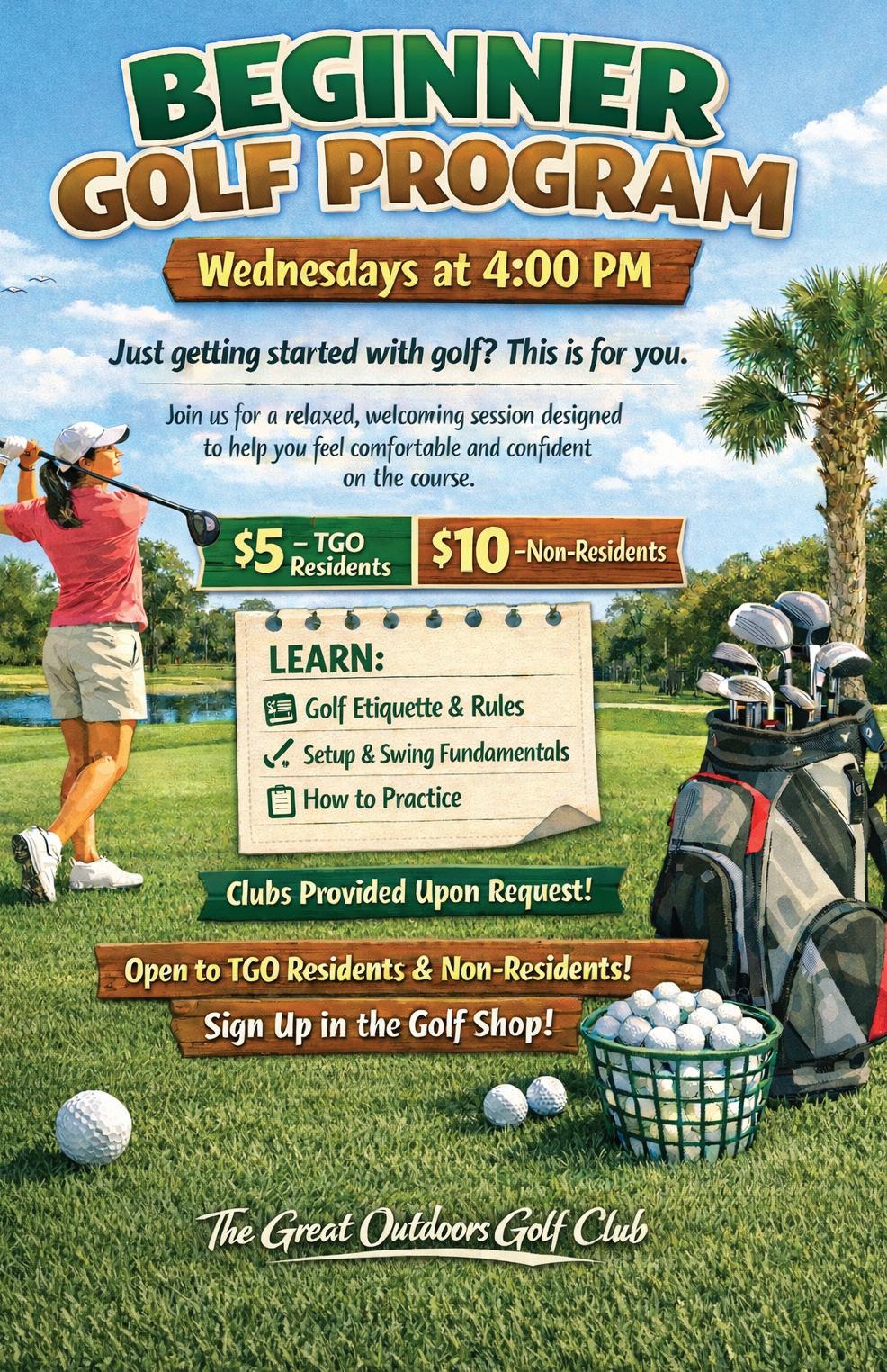 • Tournaments every Wednesday! Sign-up at the TGO Pro Shop