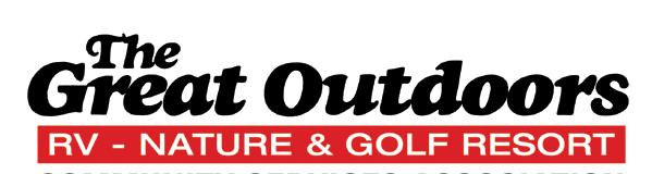 The Great Outdoors Community Services Association (CSA) publishes The Happenings 24 issues a year (one issue only in July and August). This magazine is for the information and enjoyment of the TGO community and their guests. The CSA assumes no liability for any information, omission or inadvertent error contained herein; or injury or damage resulting from the use of this information. The ideas, opinions, suggestions, classified ads, and commercial ads are to be used at the reader’s discretion. The CSA and group or individual contributors do not signify any approval, authentication, or endorsement by inclusion in this publication.