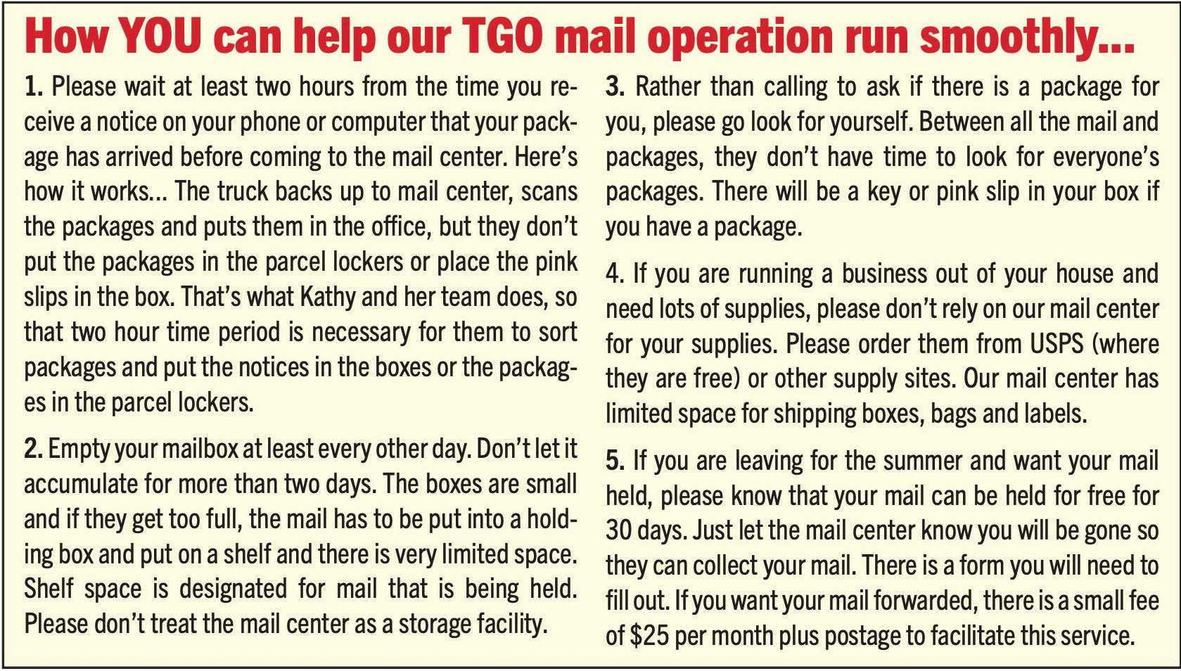 TGO Mail Center News...