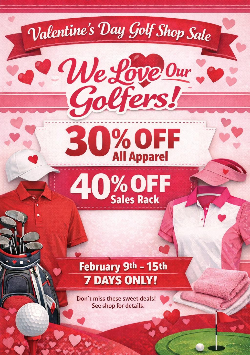 Grab your sweetheart and go golfing! Sign up at the Pro Shop.