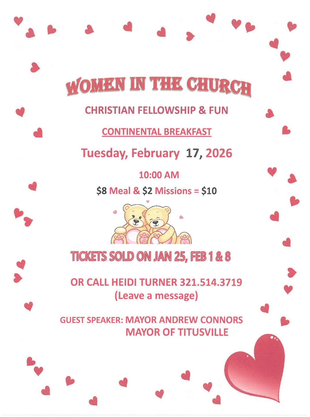 Tickets go on sale January 6. Call Cathy at 321-376-2823