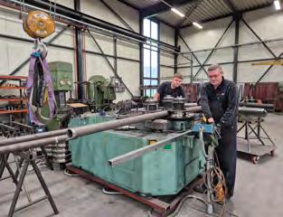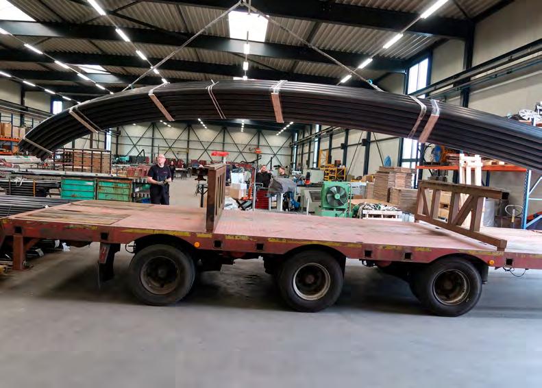 Hecht team met moderne techniek Giezen telt een klein, hecht team van tien vakmensen. Deddy Hoving begon er zelf in 1989 in de werkplaats, toen er nog met één conventionele buigmachine werd gewerkt. Inmiddels beschikt het bedrijf over een modern machinepark met CNC-buigmachines, keurig van klein naar groot opgesteld. Binnenkort wordt dit uitgebreid met een volledig elektrische machine, die nog nauwkeuriger en sneller werkt. “Een buis netjes buigen is specialistenwerk”, legt Hoving uit. “Zonder de juiste kennis en techniek knikt, scheurt of vervormt het materiaal. Buigen leer je niet op school; dat leer je hier in de praktijk, van ervaren collega’s. Het draait om gevoel voor materiaalaanvoelen of het harder of zachter is, of het meer krimpt of juist meer rekt.”