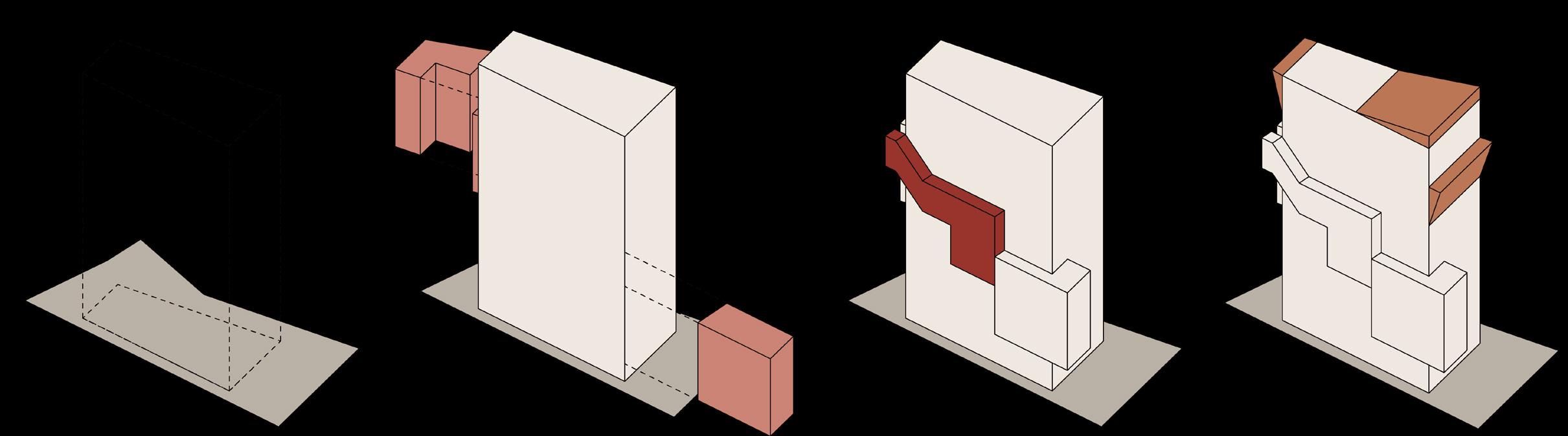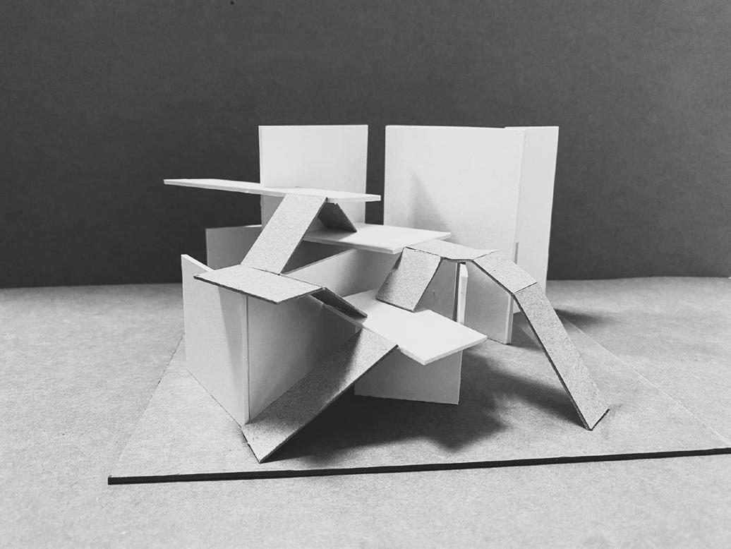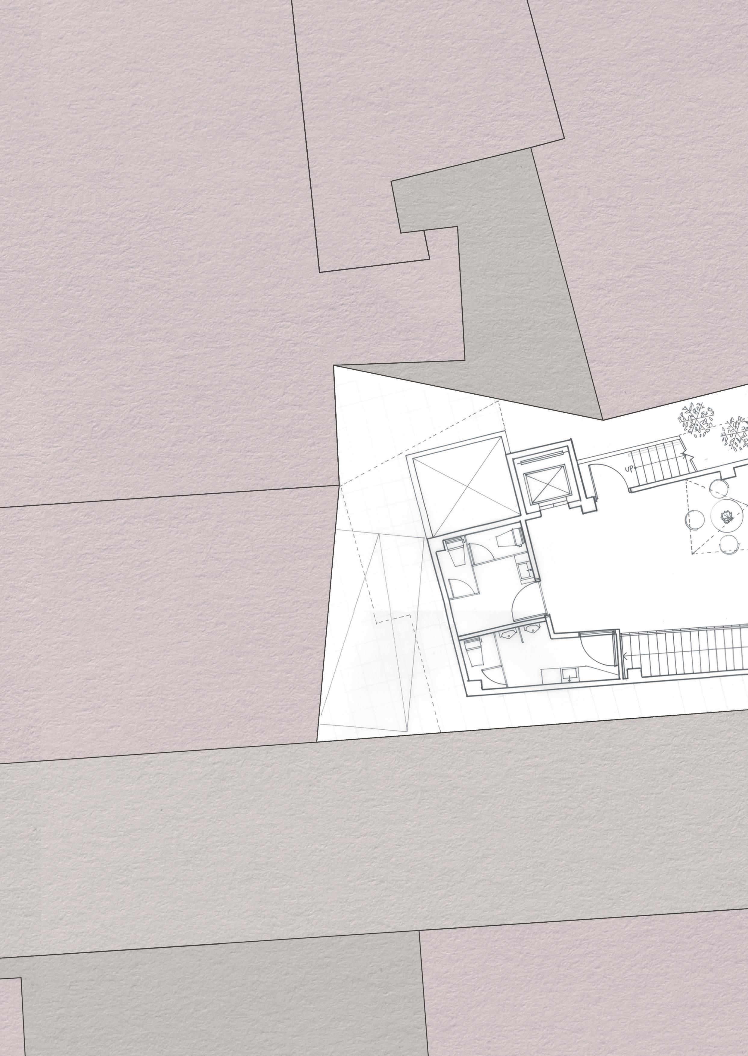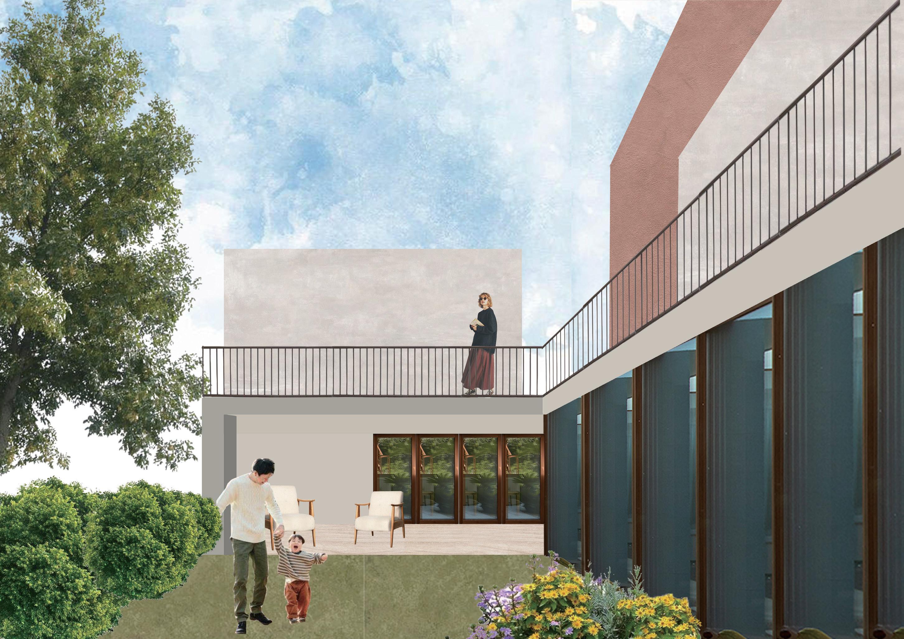 透過個人基地觀察發展出這次的設計概念以「迷走」作為出發點,以垂直空間的串聯,模糊室內外 的空間界線,作為體驗空間中迷走的感知。