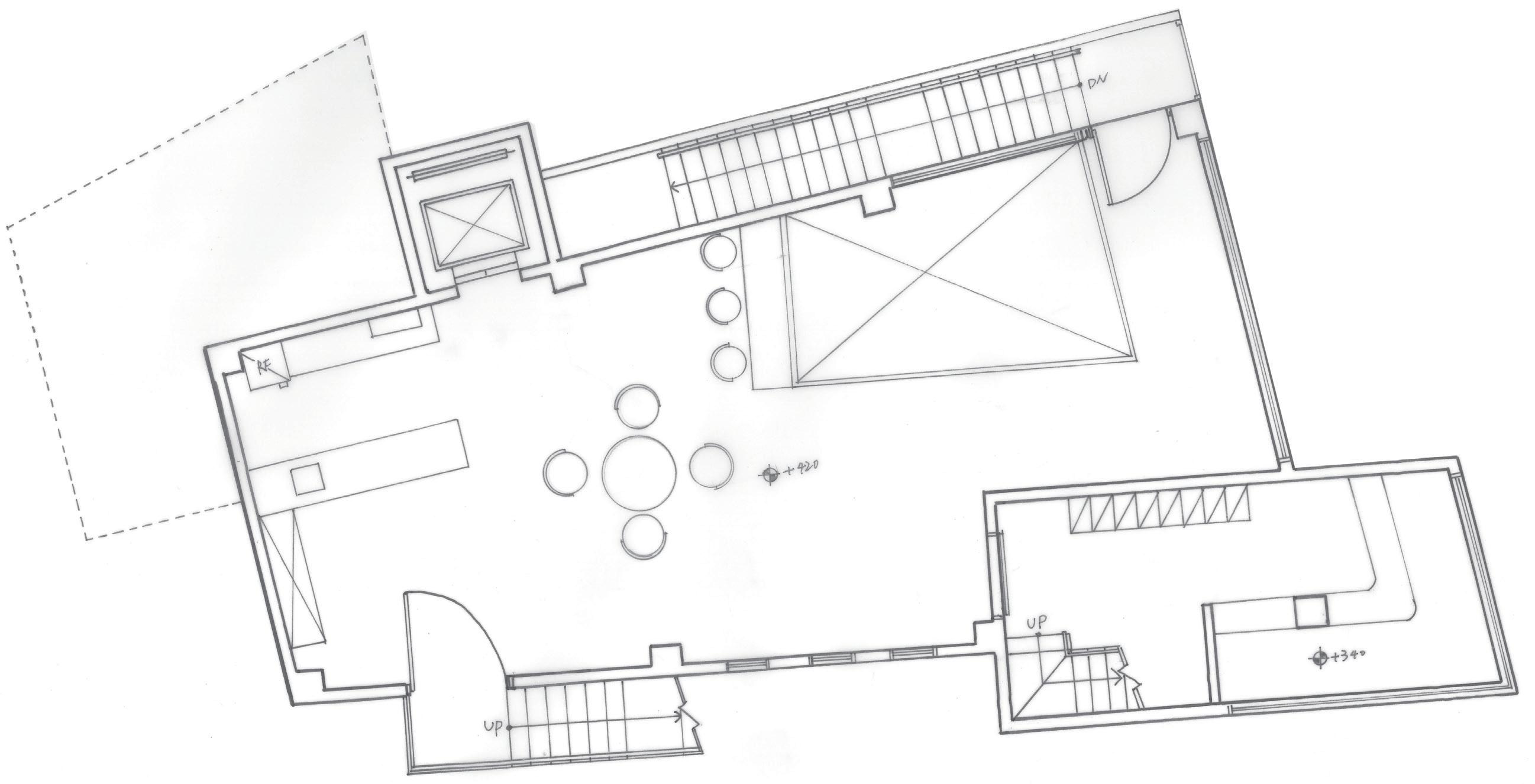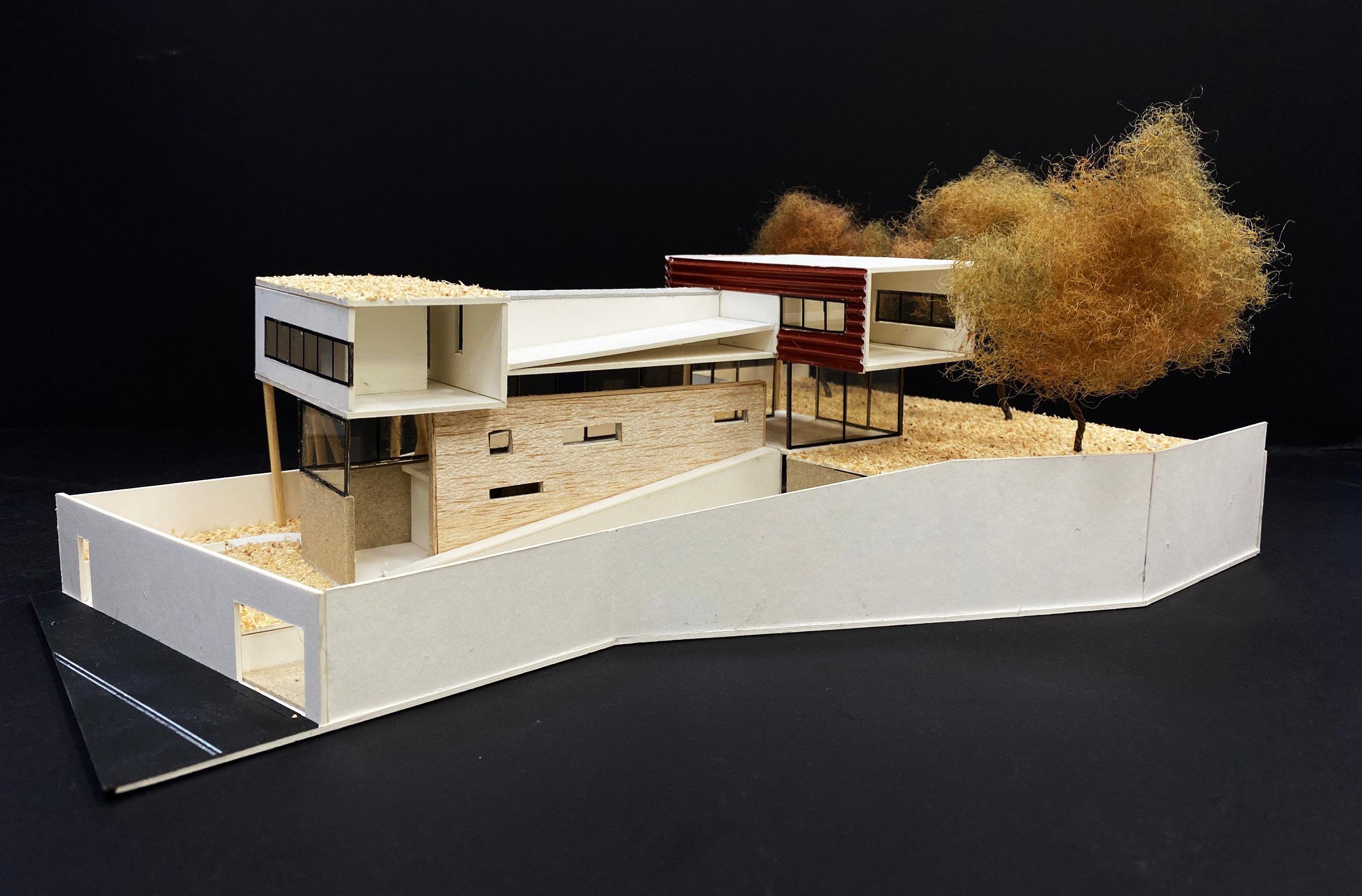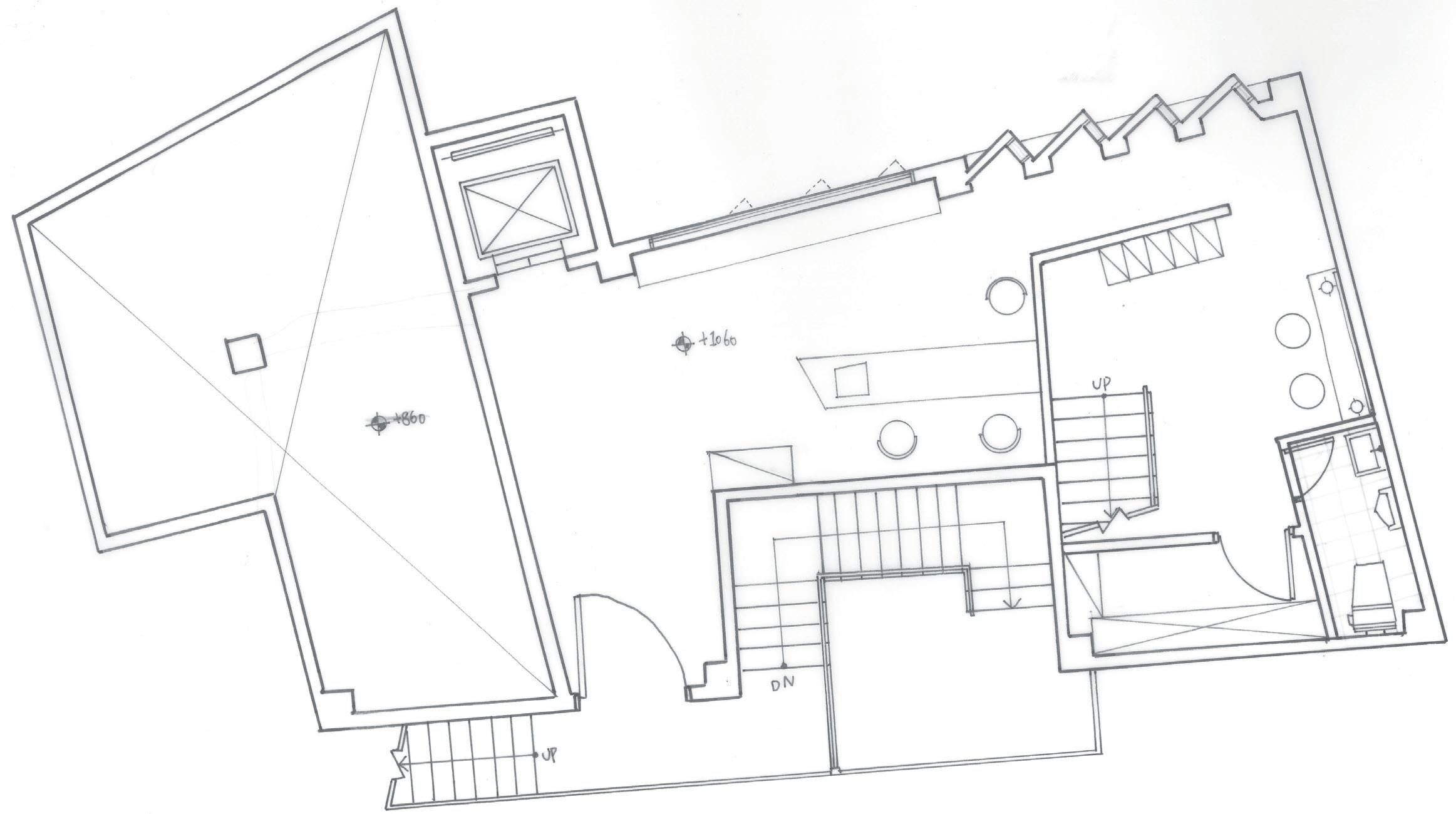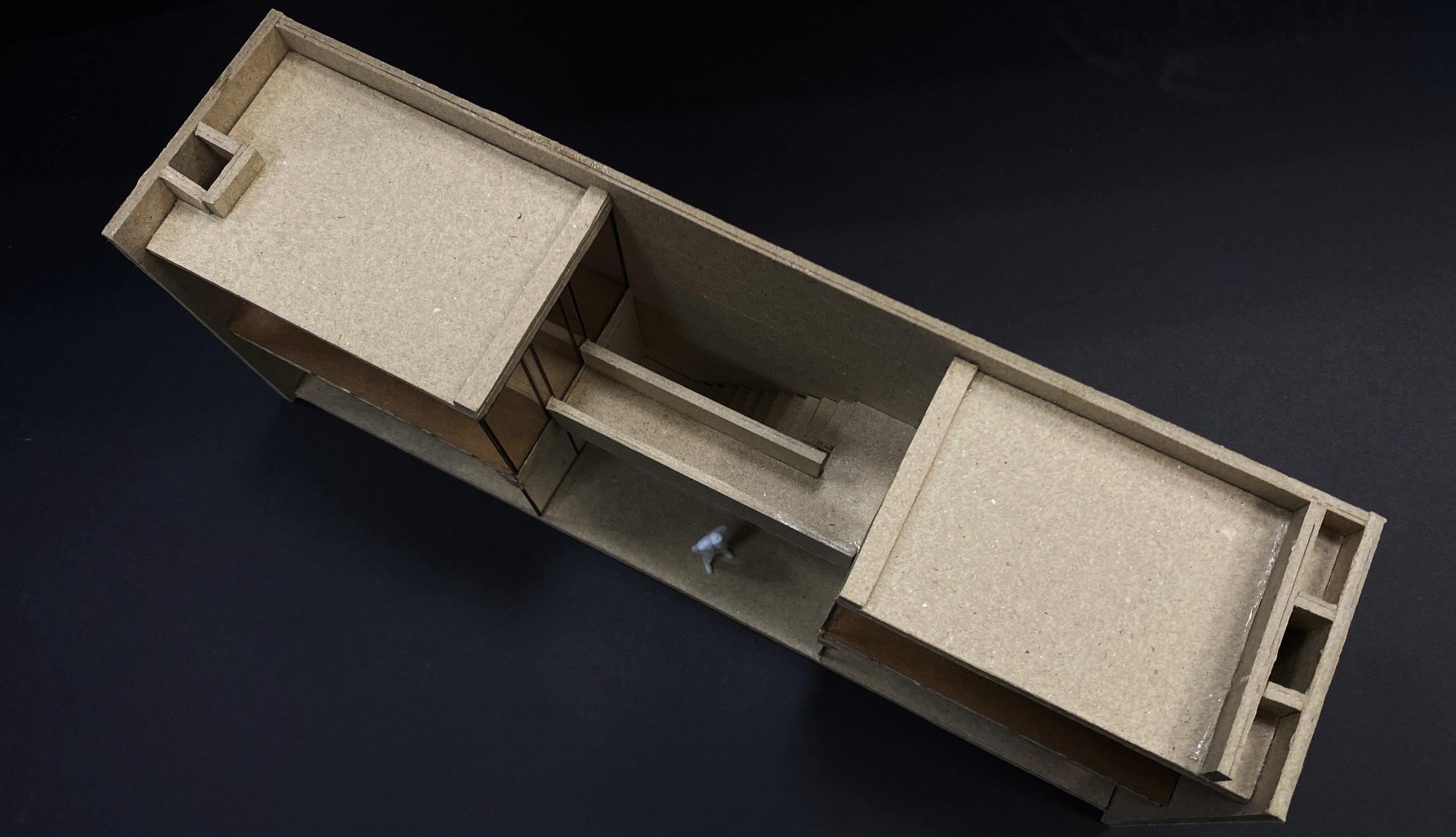 透過個人基地觀察發展出這次的設計概念以「迷走」作為出發點,以垂直空間的串聯,模糊室內外 的空間界線,作為體驗空間中迷走的感知。