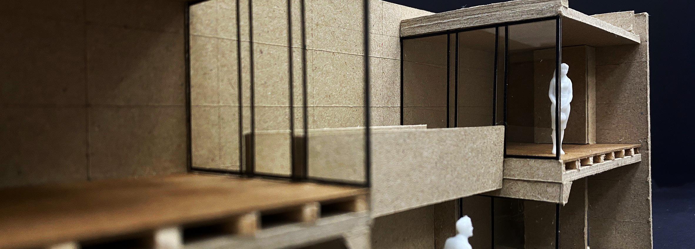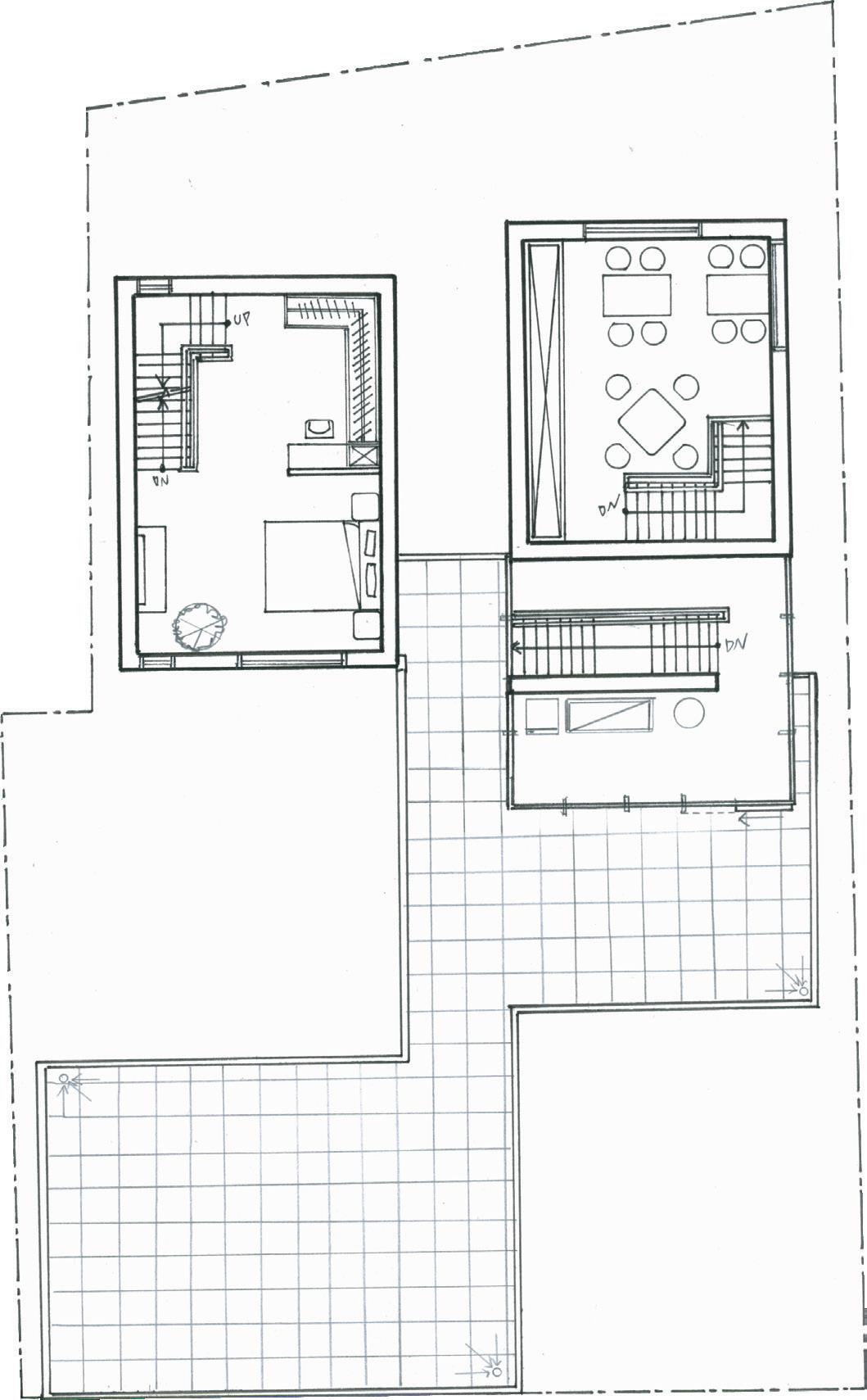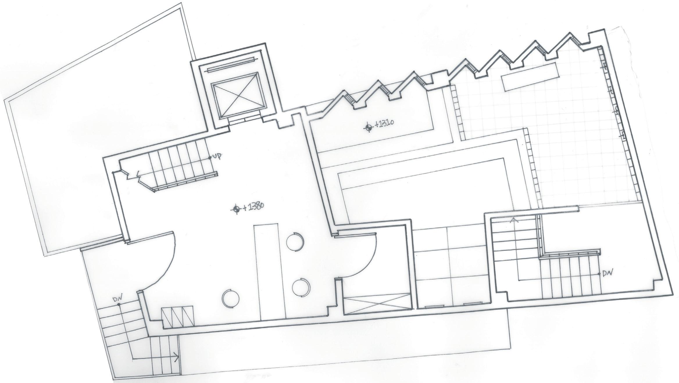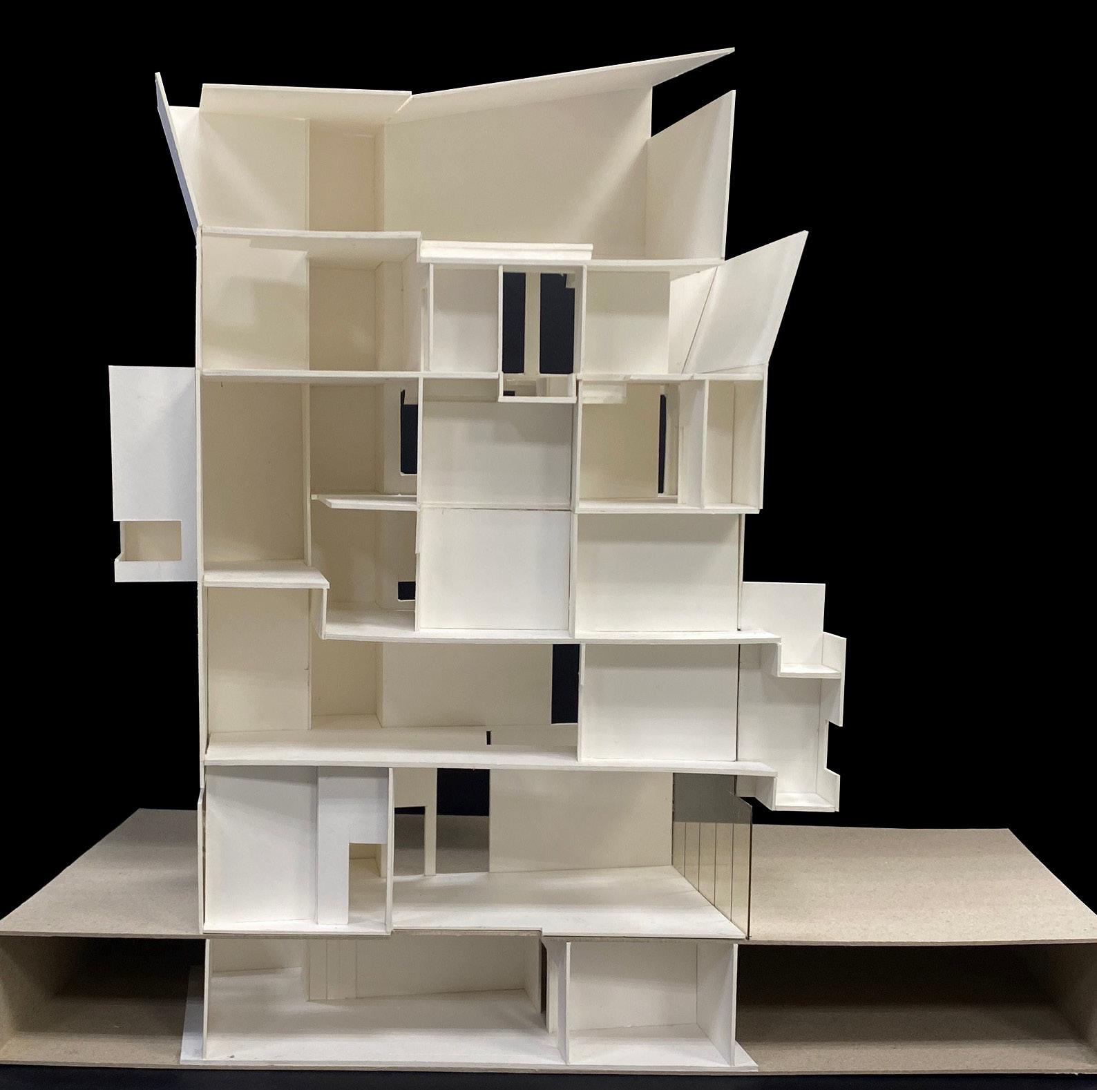 透過個人基地觀察發展出這次的設計概念以「迷走」作為出發點,以垂直空間的串聯,模糊室內外 的空間界線,作為體驗空間中迷走的感知。