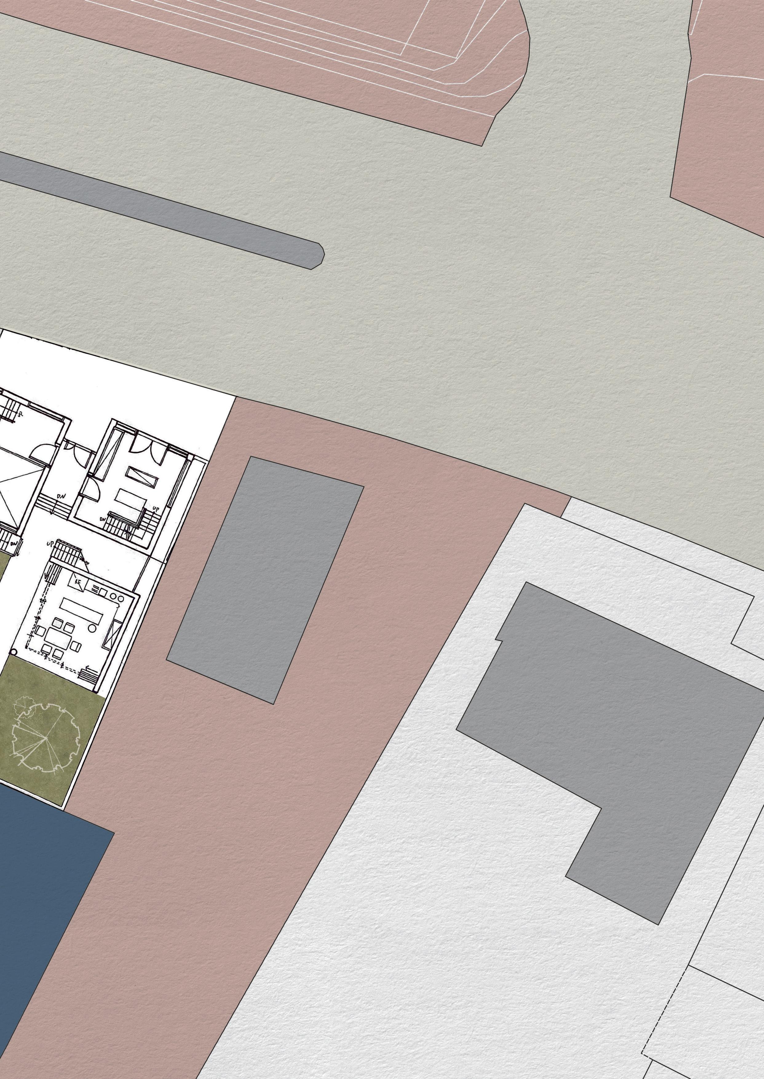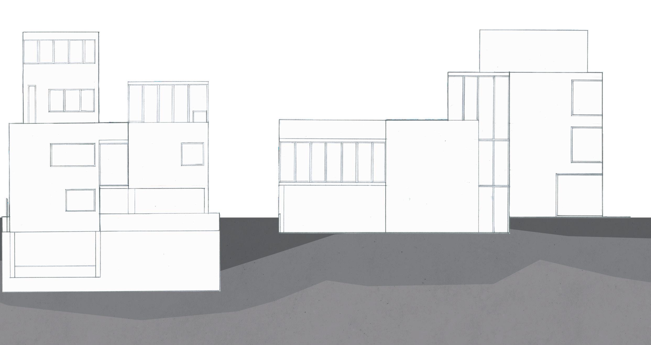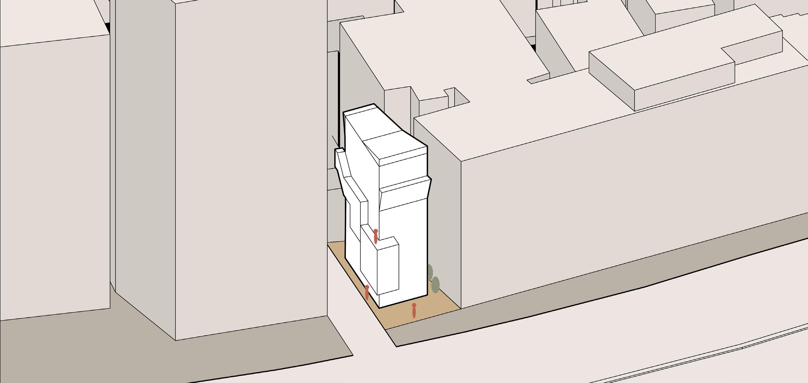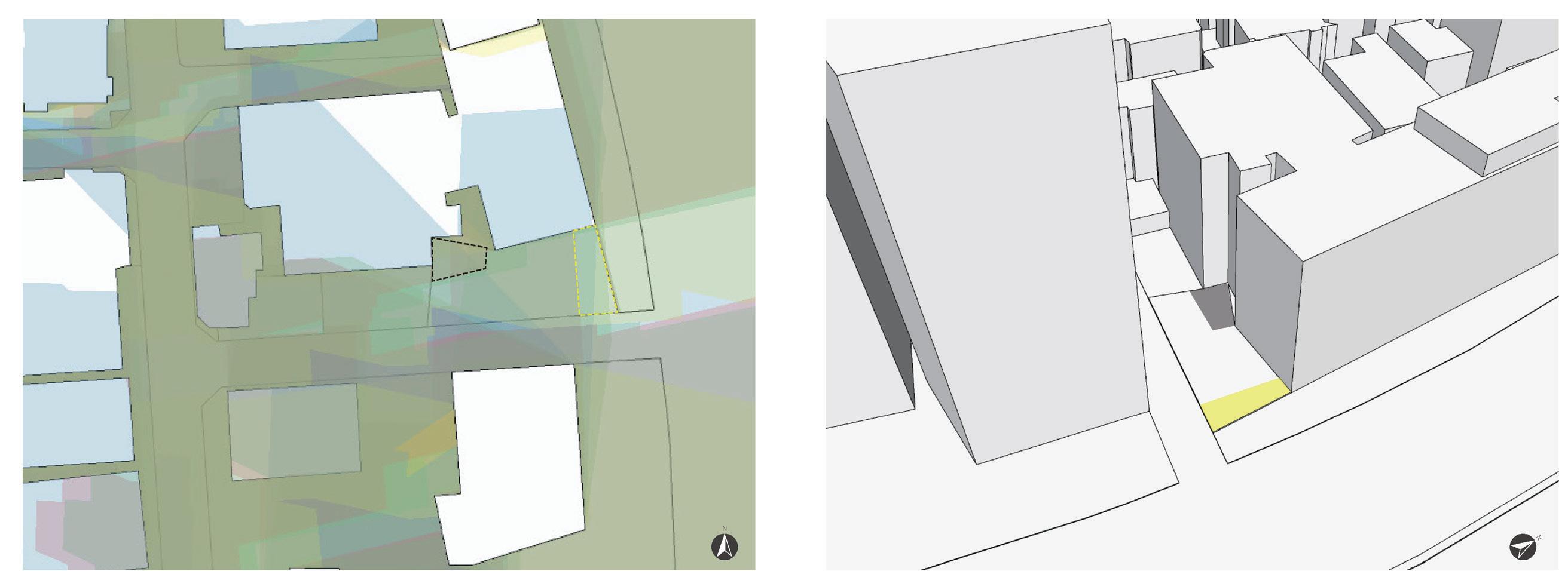 基地兩側退縮,留出供行人使用的人行道 與提供鄰房間的空間。