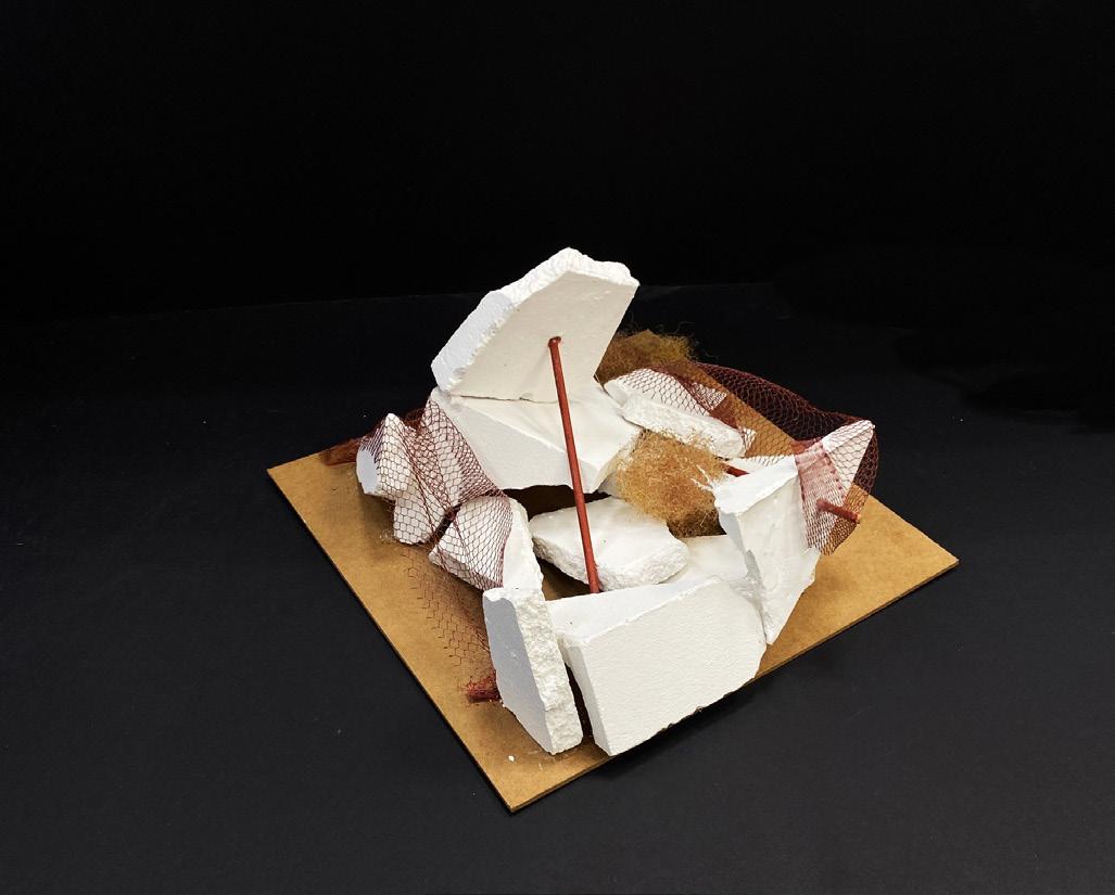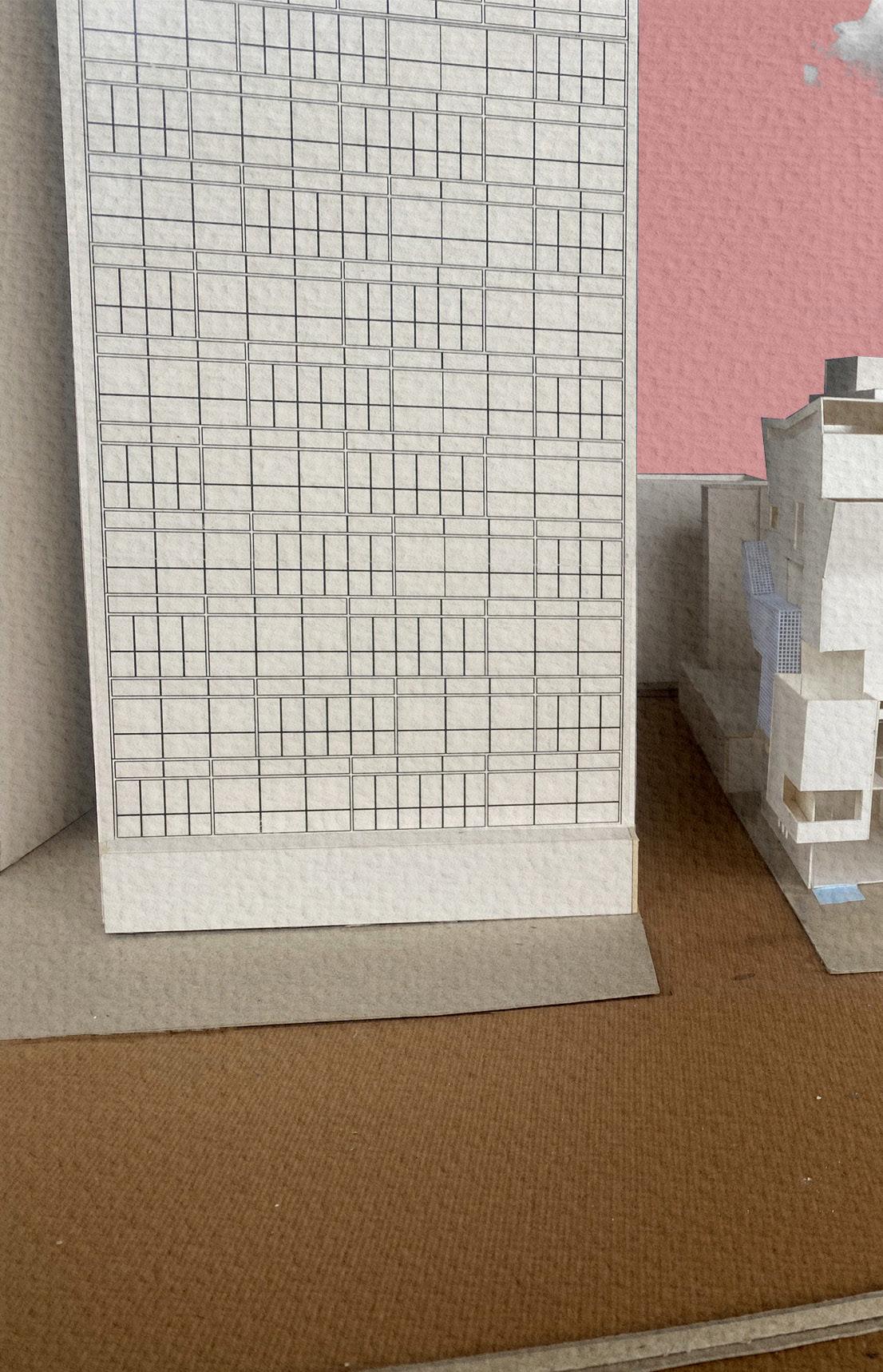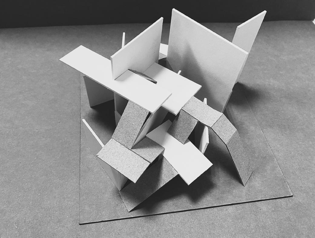 透過在基地周遭的觀察,發現附近因高樓與道路交錯複雜,讓人產生分不清方向的迷走之感覺;所 以我將製造出這些感覺的道路系統(分為直線、T字路口、十字路口、死路)與創造出活動空間的 方法(分為四邊不開放、街角開放、直通開放空間)等的要素整理,並將這些要素轉化進設計中。