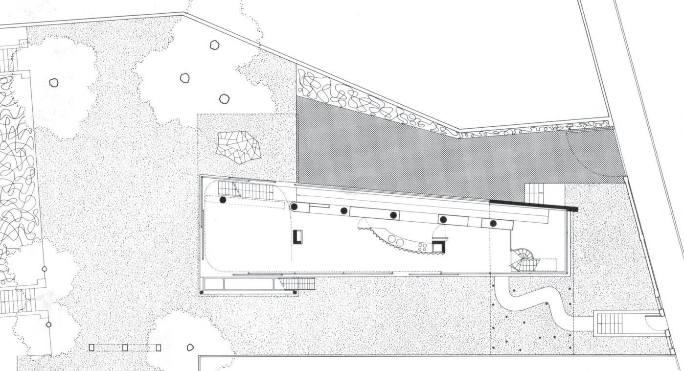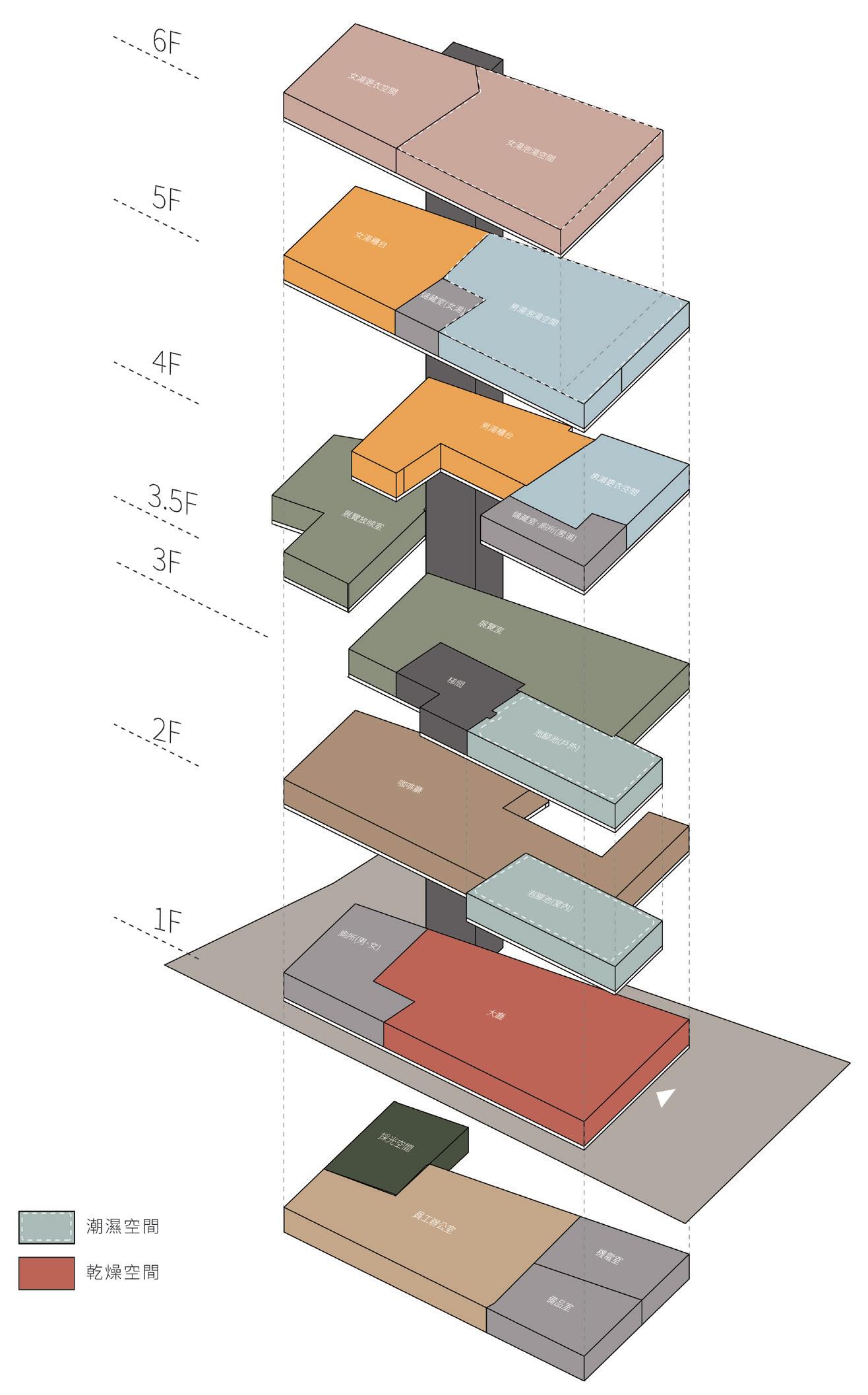 從自然觀察環境中出發,發現基地周遭地勢多變,像是將建築包裹在地形內,並創造出不同高低的空間對話。