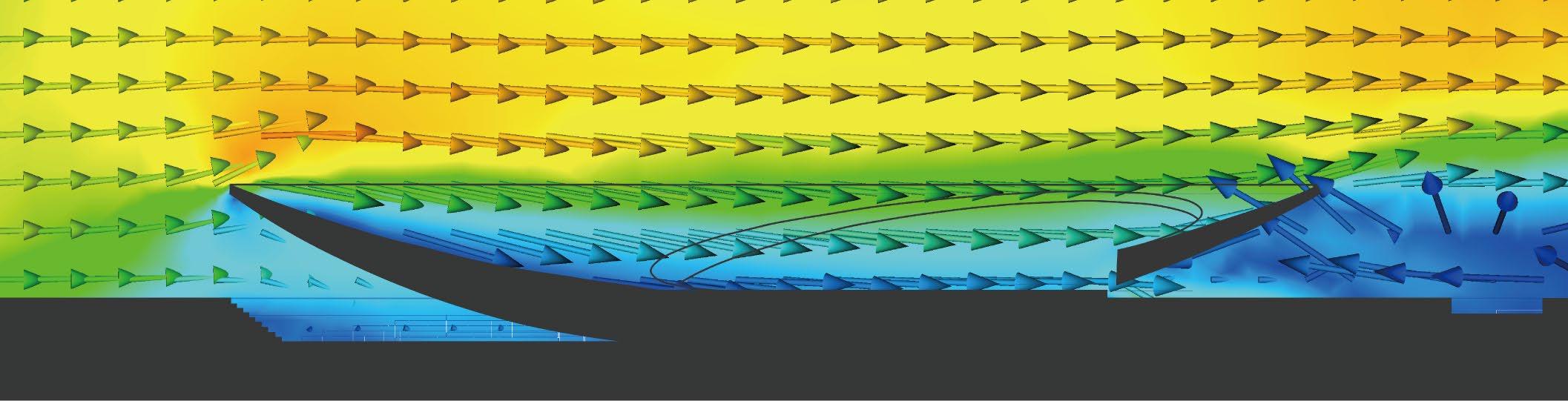 03 風のシミュレーション BOWLの曲面により、屋外空間をメモリ アルにとって大切な静寂で落ちついた安 定した環境とする。