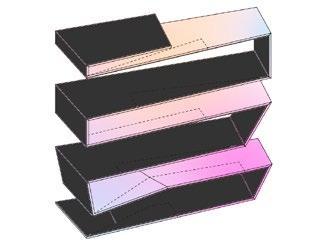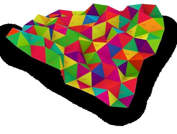 VUILDの方からご提供いただい た資料から、三角パネルで割っ たメッシュのパネルの種類を限 定する際に起こる、メッシュの 収縮を利用して空間化すること を試みた。