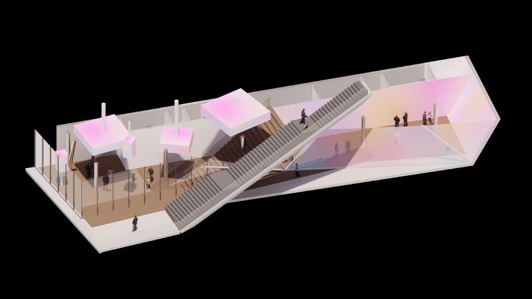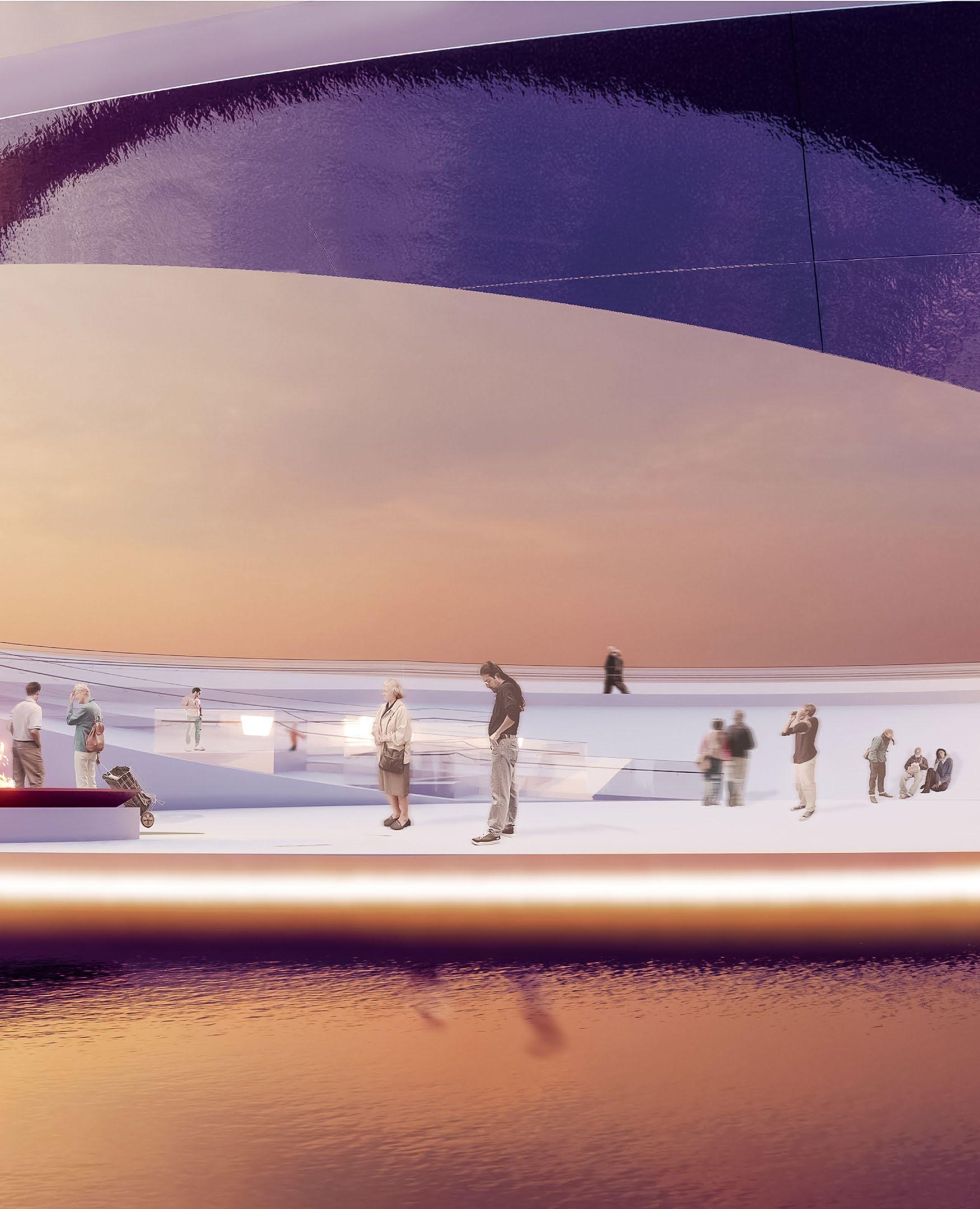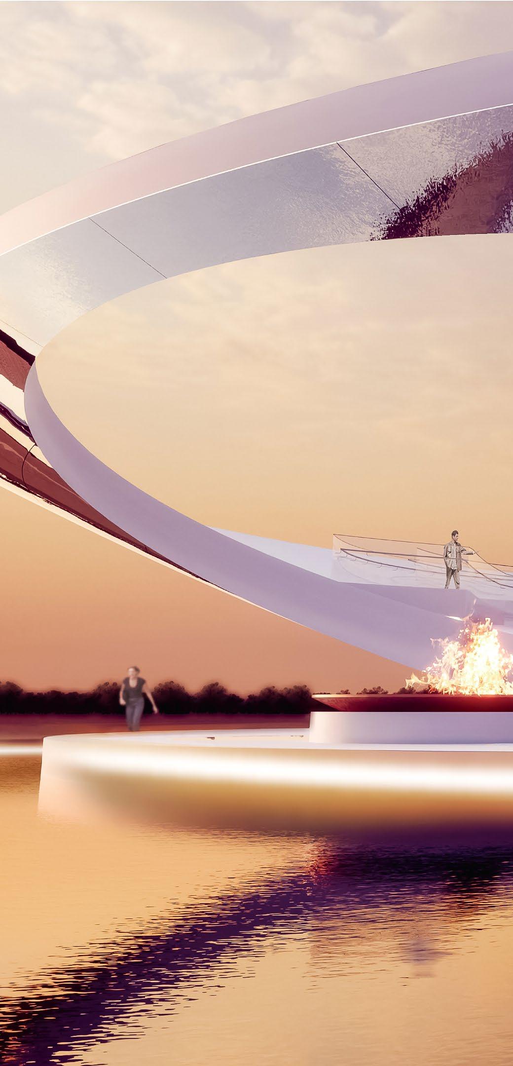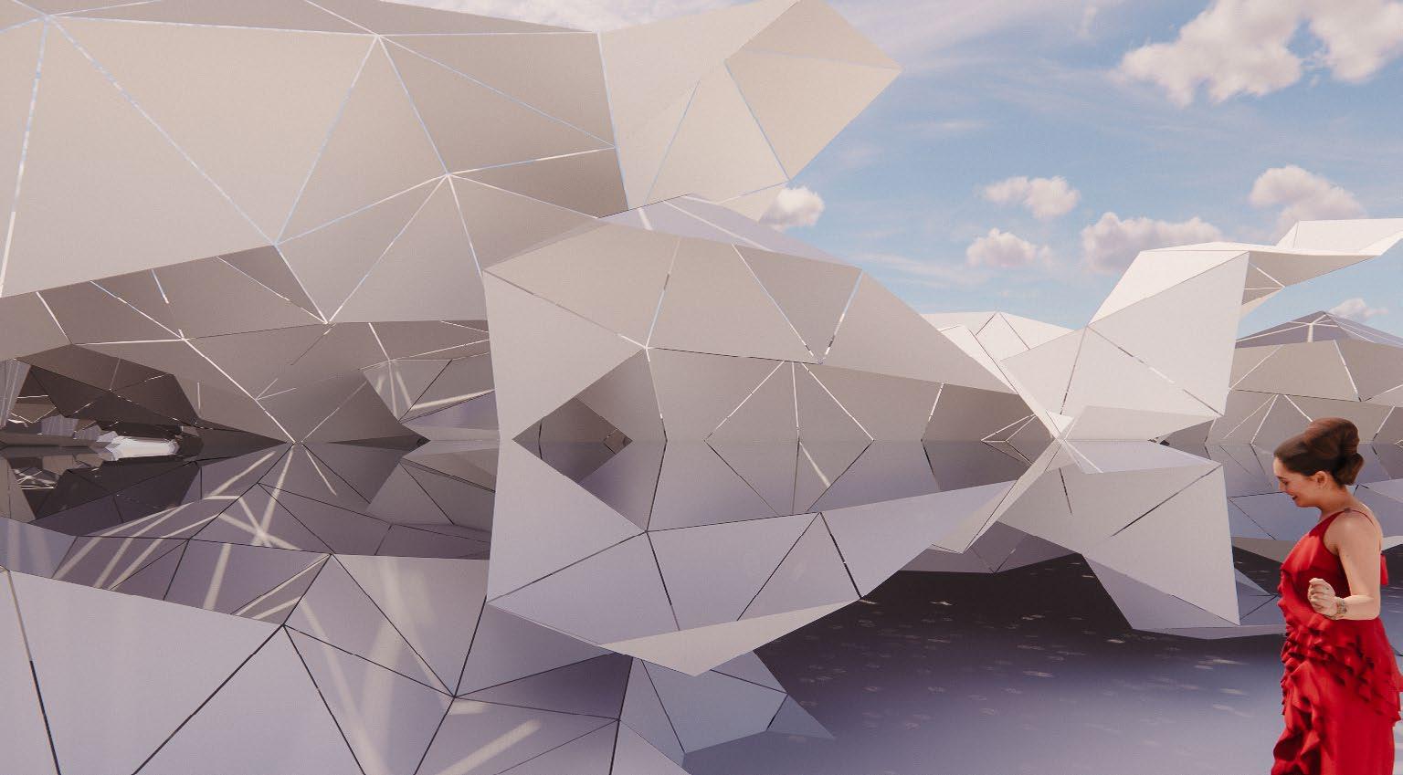 • 一次審査時のメインビジュアルを作成し、一次から二次までのモデリングチームのリーダーとして、 構造家や海外の施工業者の方とのミーティングや施工を見据えた設計、マテリアル検討などに参加 しました。