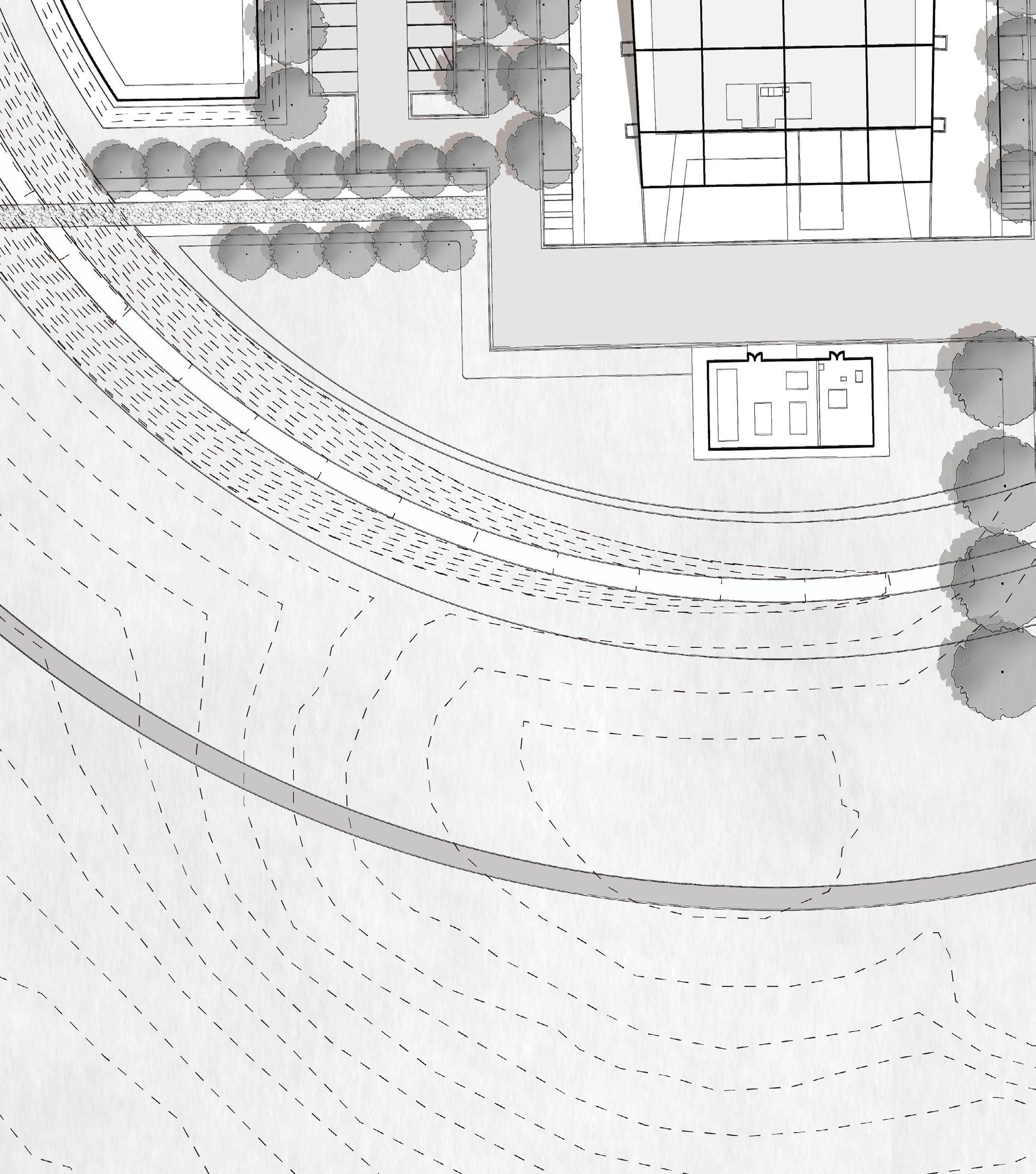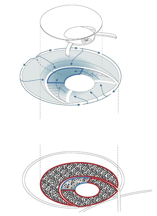 夏期は入水可能なプールとして利用できるようにする。冬期は雨水が枯渇し 水盤の凍結が予想されるので水盤の水は抜かれる。これにより、水盤の利用 もMIRROR BOWLに映し出される環境も変化する。こうしてTIMELESSなメ モリアルにする為の季節ごとに変化する景色と体験をつくりだす。