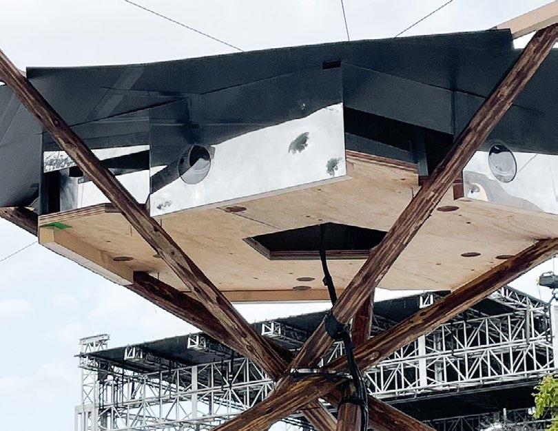 • 構造と施工性を両立するディテールの検討、前年に実施したインスタレーションの投影設計や吸排 気システムの知見を活かした設計を行ないました。
