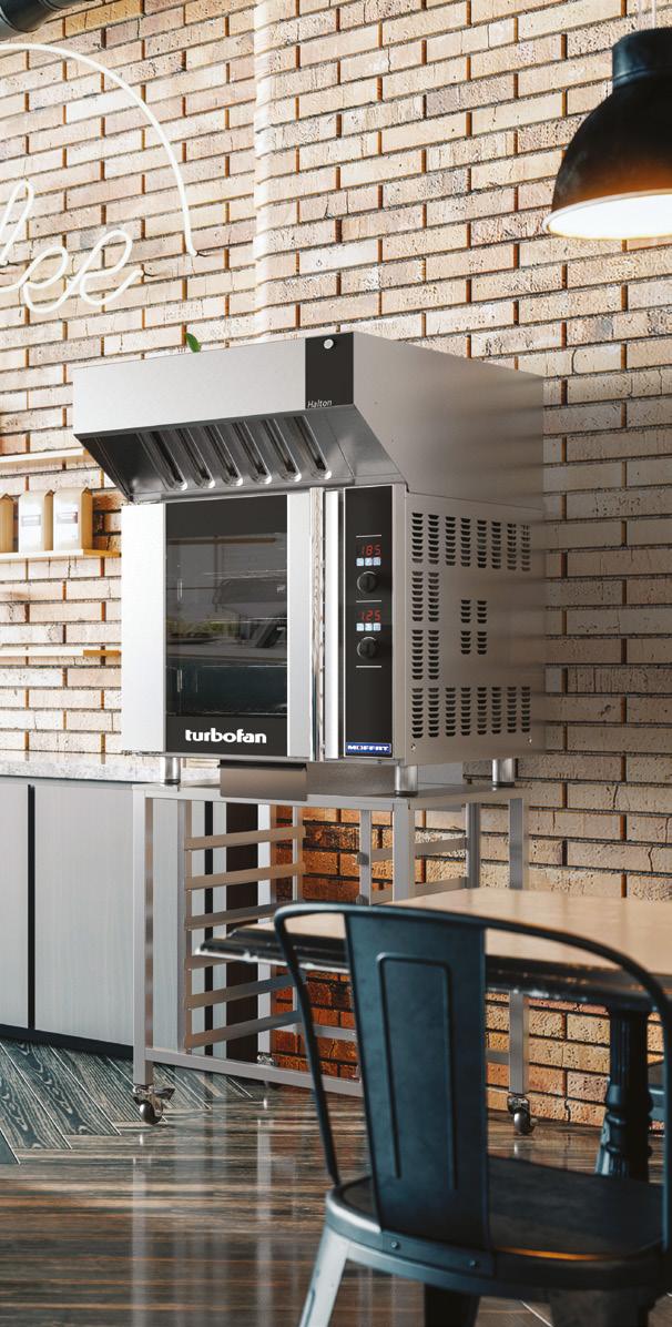 For businesses wanting to increase their production capacity or expand their menu the previous ventilation boundaries are no longer an issue. You can add any Turbofan 30 Series electric convection oven with a Halton ventless condensing hood and create a new independent cooking station without fuss or bother.