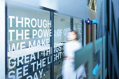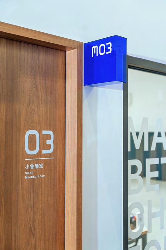 支援各方夥伴停泊的巨型戰艦。風格採簡約的編排,以大而圓潤的英文字母分區,配上藍、白、灰等清爽的配色, 在硬派與親和中取得平衡,整體兼顧概念傳達與空間舒適的需求。