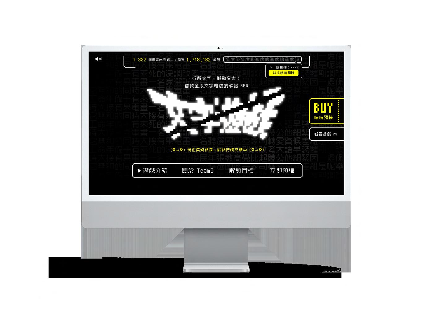 文字遊戲為台灣獨立製作團隊 TEAM 9 所研發的電腦遊戲,以異世界的所有事物都文字化為主題,在充滿字句解謎 的世界裡冒險,打敗魔龍,拯救世界。整個網頁忠實還原了遊戲的美術外,也將所有網頁內的元素都盡量文字化, 以達到彷彿正在遊玩遊戲的沈浸感。
