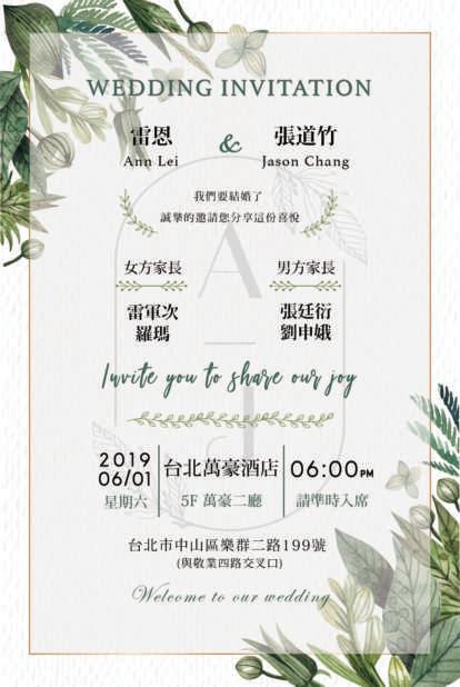 孫胤軒 Miko 姜靜君 MuMu& 男方家長 女方家長 Groom Bride 孫黃鳳 孫國文 陳妙苑 姜聰安 楊秀鳳 Invite you to share our joy Welcome to our wedding 台北市信義區忠孝東路五段10號 2019/11/02(六) 12:00 結婚午宴 11 :30 雞尾酒會 12:30 準時開席 10 Zhongxiao East Road, Sec. 5 Xinyi District., Taipei 104, Taiwan 台北 W 飯店 8 樓 風尚廳 W TAIPEI 8F-MEGAE 41 Invitation Design