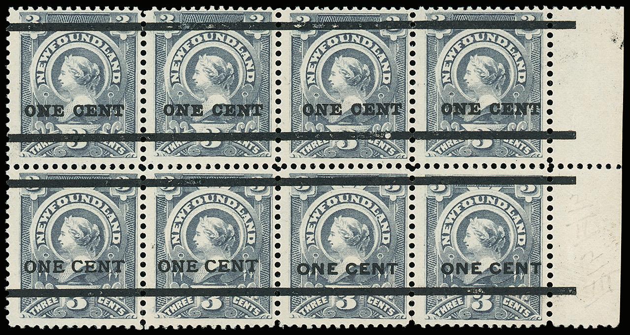 The Robert Dyer Collection of Newfoundland contains several large gold one-frame exhibits that specialized in the surcharge issues, including the 1897 and 1920 Postal Shortages and the Airmail issues. Most of the rarities are present including many items illustrated in Walsh’s Specialized Newfoundland Catalog.