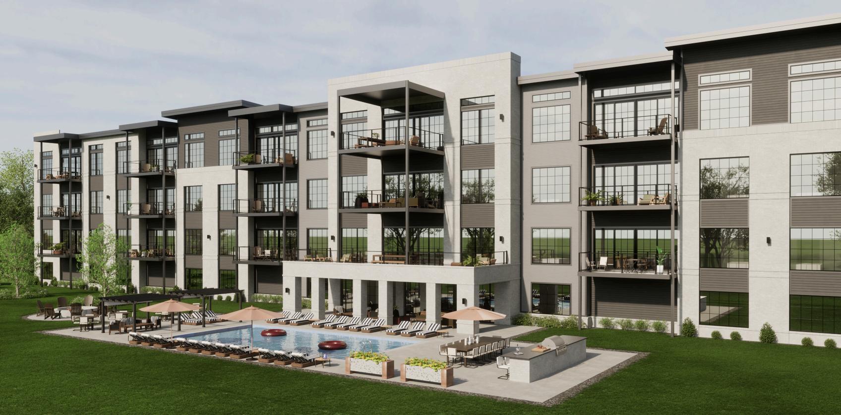Located on the West side of The Continental, Residence A enjoys unobstructed views of the surrounding timber and overlooks the resort-style pool.