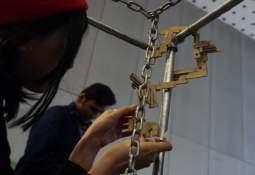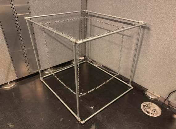 We try to transform the digital model into a physical model, to understand the relationship of space by doing craftwork. Due to the uncertainty of the relationship between artificial intelligence and humans, we choose to use iron chains to build an unstable frame.