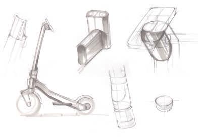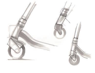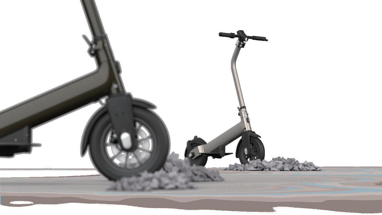 環境設定於都市生活,由於臺灣的柏油路面普遍較為崎嶇,因而在一開始的 滑板車騎乘配置上,選擇Trail較長且較大輪徑的前輪。