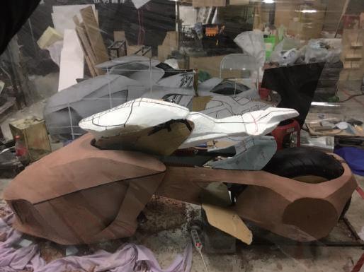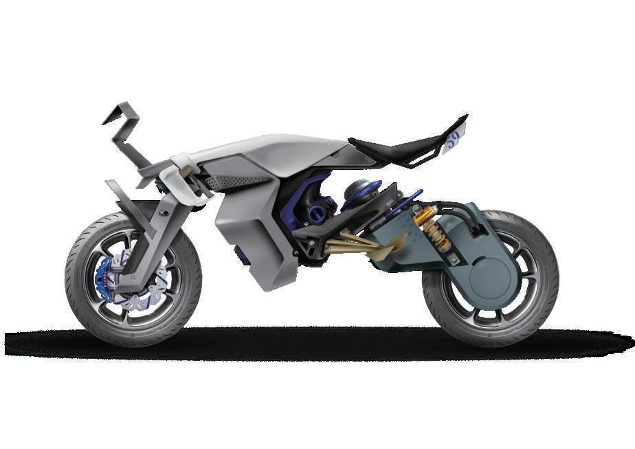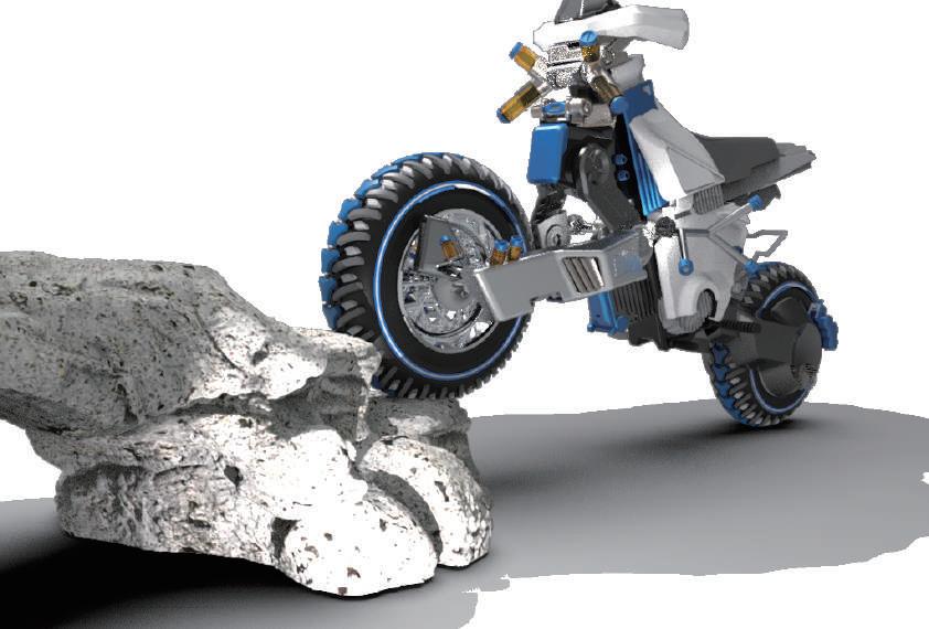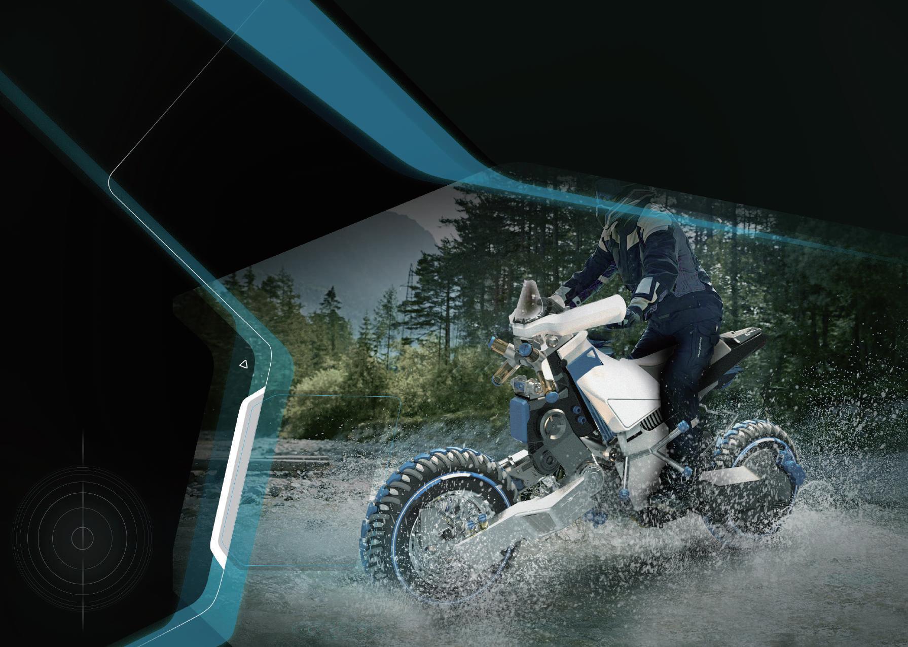 形,本次選擇 電動越野摩托車 為主軸,擁有極強的環境適應能力。雖然車身受風面大而導 致風阻大,但透過本設計可 將其風阻轉為 AIRDURO 的助力 ,便於 收集空氣能源 於車上之儲 氣包,成為探索空氣能源之樣本 。