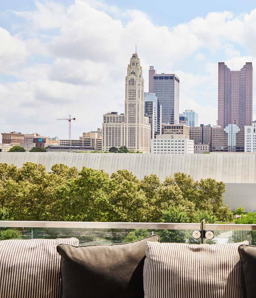 A panoramic view of the Columbus skyline awaits visitors to Brass Eye, a new rooftop bar and one of multiple food and beverage concepts recently opened at The Junto, a new hotel in Franklinton.