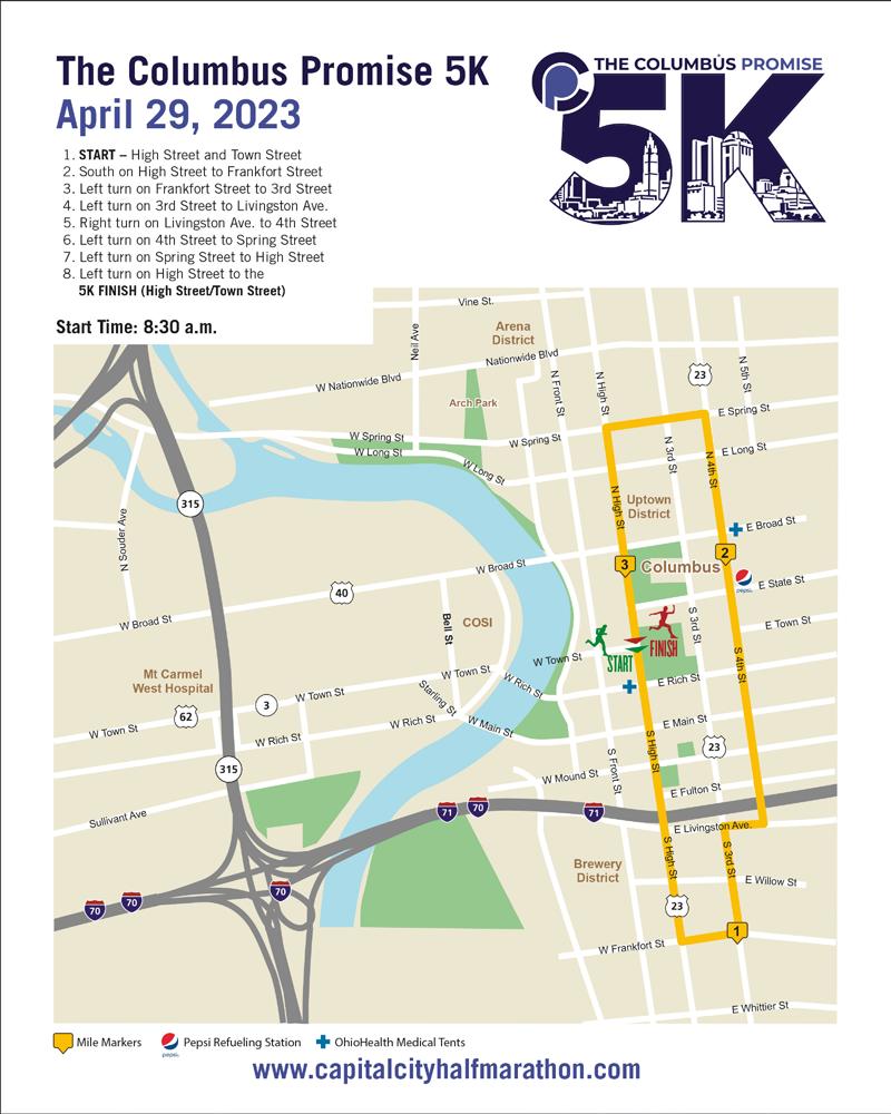 OhioHealth Capital City Half Marathon 8 a.m. OhioHealth Quarter Marathon 8 a.m. Columbus Promise 5K................................................................................................. 8:30 a.m.