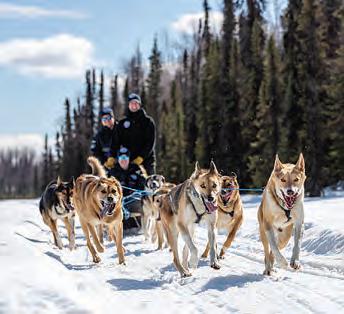 We’re Matthew and Liz Failor, a husband-wife duo who live with our champion Alaskan Huskies in beautiful Willow, Alaska. Each spring, our team competes in Iditarod, Alaska’s thousandmile race. Throughout the year, we welcome locals and visitors to our home to meet our dogs, see how we train and experience their own dog sledding adventure on our private trails with Denali views!