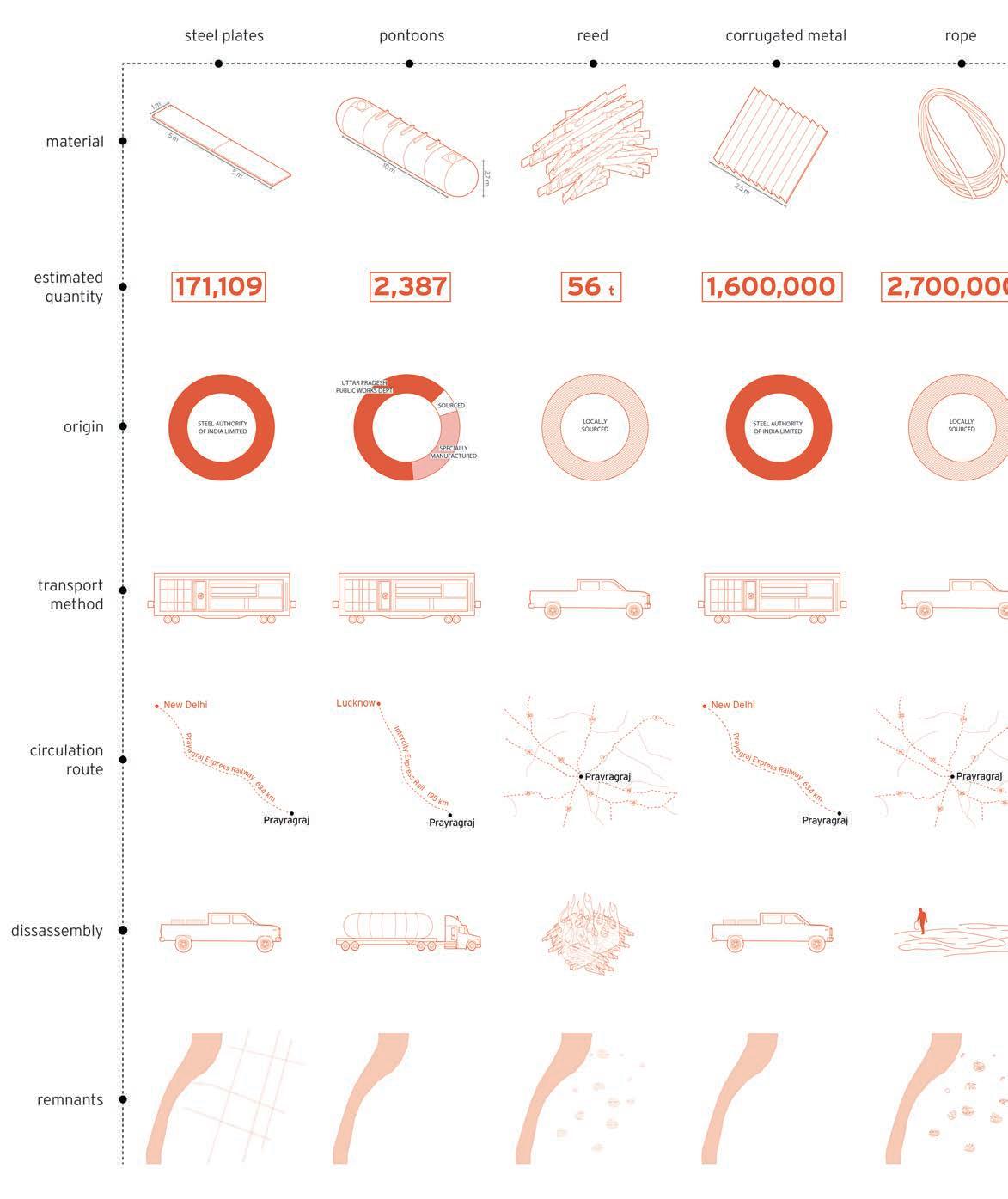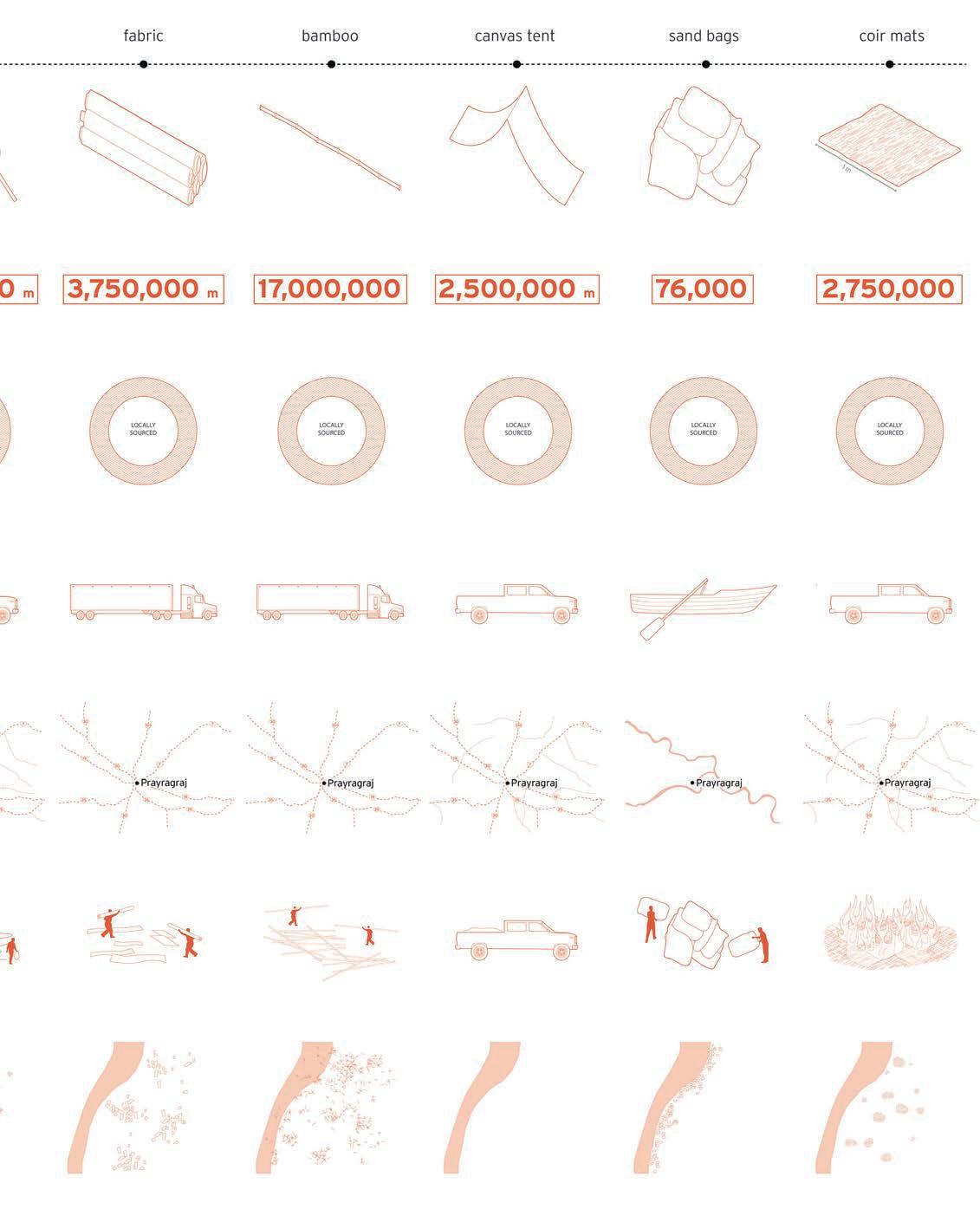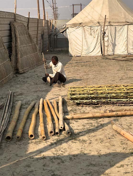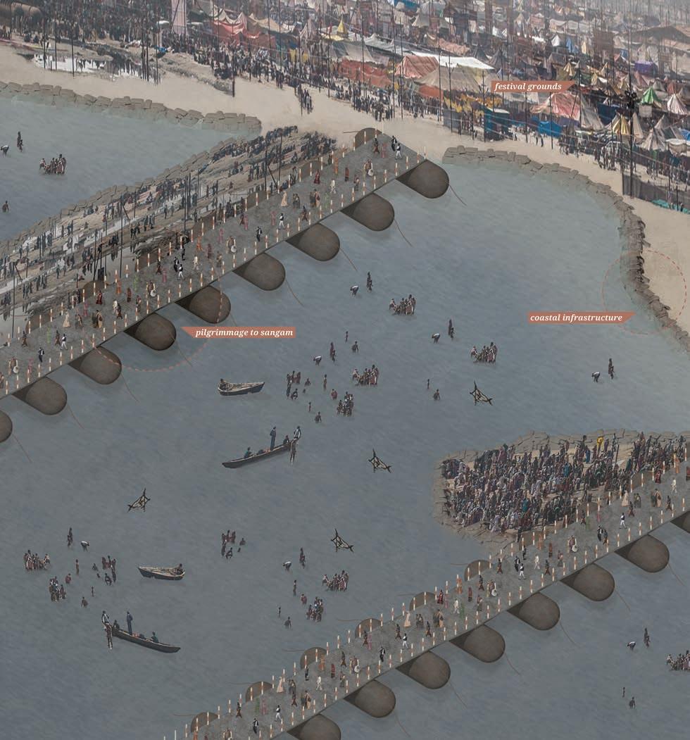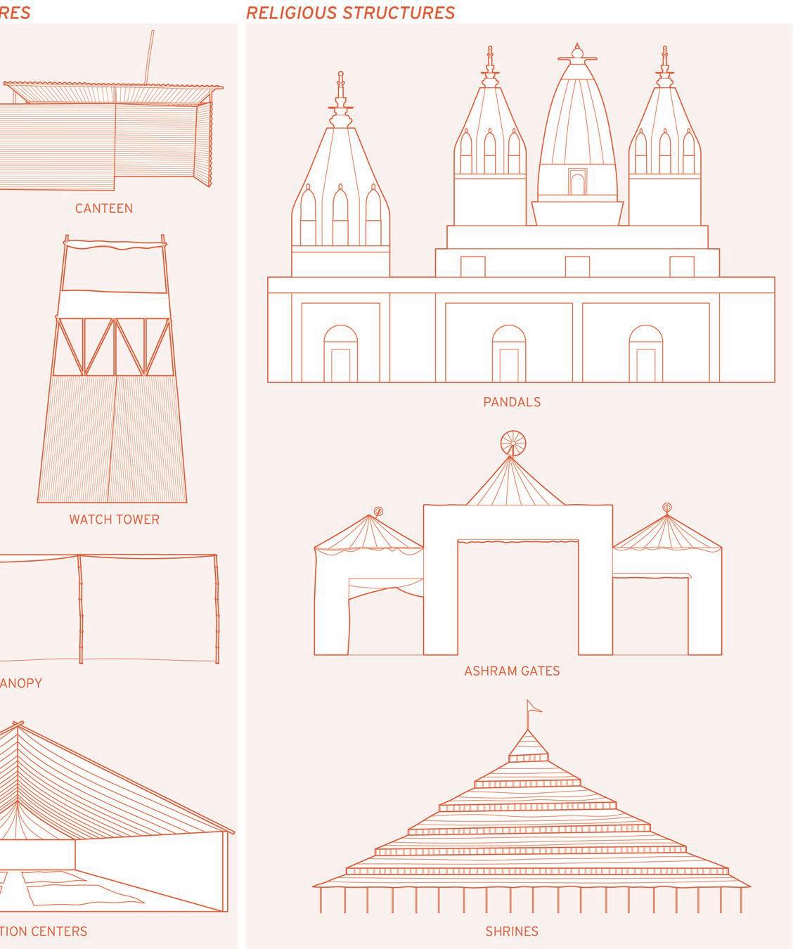 In states of temporality, conventions can be challenged and reimagined. Ephemeral architecture responds to fluctuating conditions and is often built with lightweight, recycled materials that allow for reconfiguration and reinvention. Melas, which is Sanskrit for gatherings, are a lens through which ephemeral architecture can be further explored in its most idealized form. The largest Mela in the world is the Kumbh Mela in Prayagraj, India. It is a Hindu religious festival that takes place at various scales every year. The rapid construction and disassembly make the city surreal. For a few moments each year, this is the densest city in the world, but there are no skyscrapers or mega structures. This thesis aims to speculate on the transcendental atmosphere of the Kumbh Mela by reconfiguring materials from the event to create temporary escapes from ordinary life that exist before and after the festival. The simple assembly of the spiritual retreat could be replicated for other temporary needs. The design conceptually draws from the ephemeral megacity and physical reuses elements of the festival to demonstrate the scalability and versatility of this form of design.