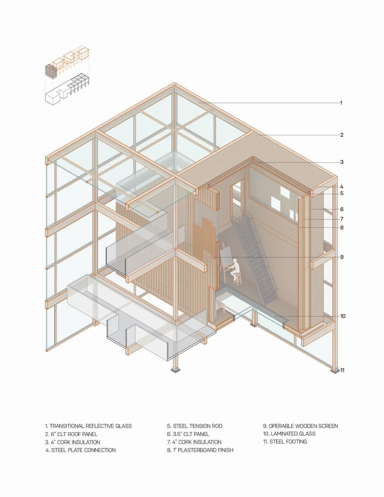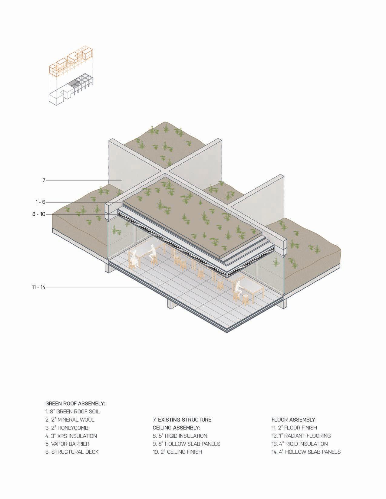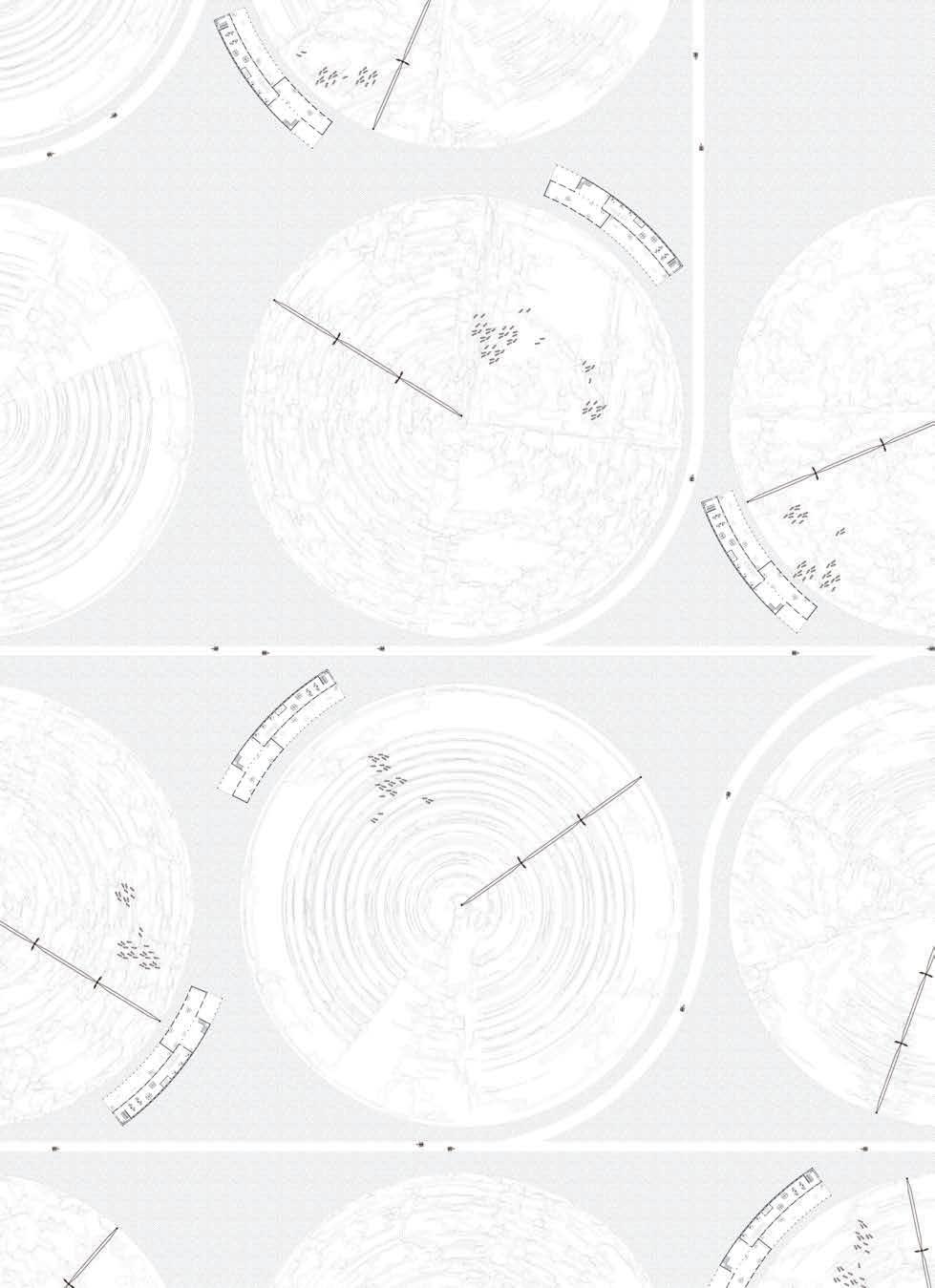 In a region plagued by environmental degradation caused by corporate farming, our project explores the future of sustainable agriculture. Our chosen 6 x 6 mile site juxtaposes a portion of the Rita Blanca National Grassland with a corporate feeding farm. Mediating between these two extremes, our proposal is a largescale integrated crop and livestock system (ICLS). This method manages both crop and livestock production so they support each other. Since this system has never been implemented at a large scale, the sheds also act as research facilities. The scattered agricultural sheds are designed to accommodate the seasonally changing animal grazing, crop growth, and research programs. The building includes residential spaces, research laboratories, as well as a double-height adaptable barn, which can house humans, cows, or large machinery. The insulation and ventilation systems change throughout the project depending on the occupants. This creates various thicknesses of enclosure ranging from the mesh-like screen to the thick hay insulated dormitory walls.