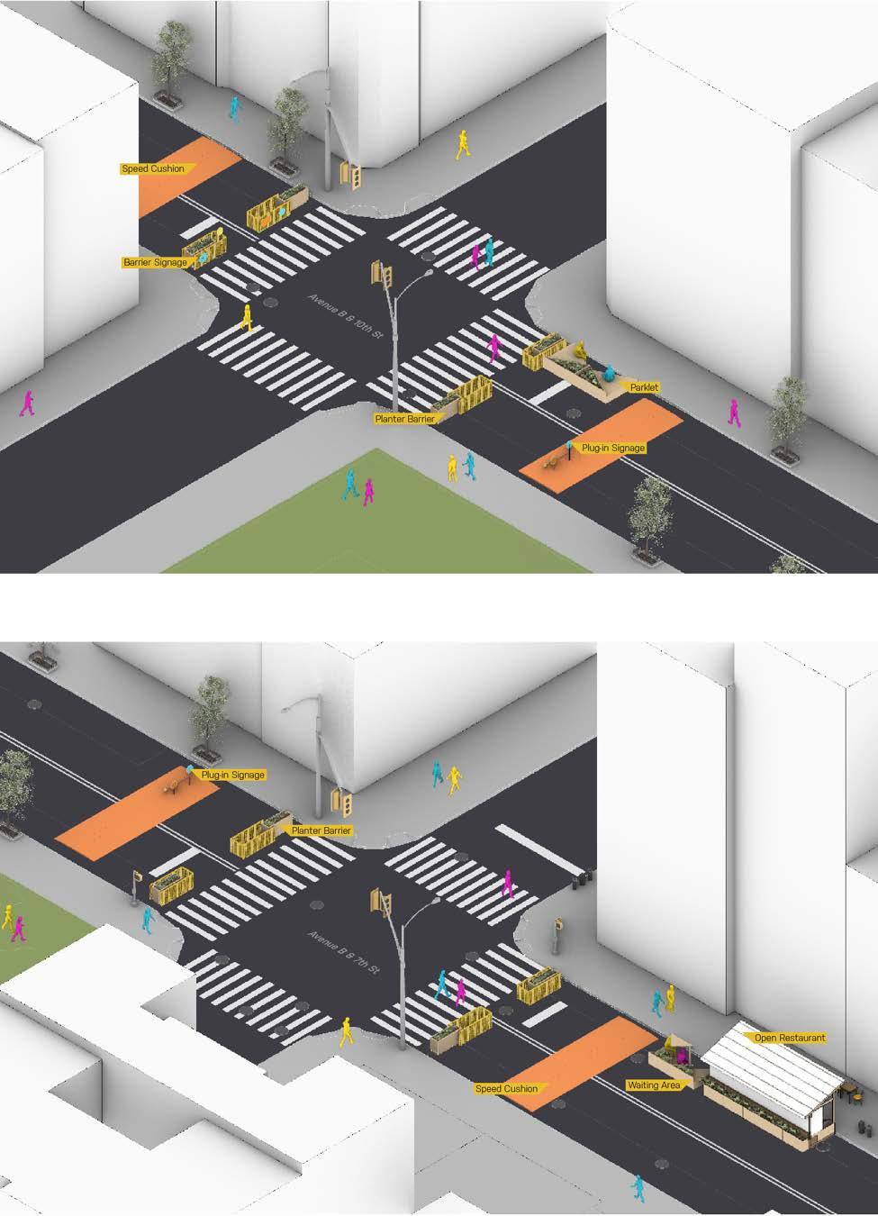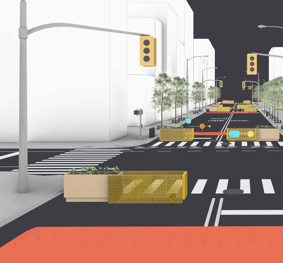 an adaptable street barrier that facilitates the pedestrianization of Avenue B