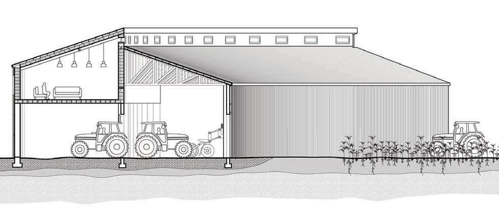 the redefined agricultural shed adapts to the different seasonal programs of farms to both maximize efficiency and preserve the environment