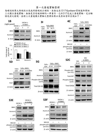 第一次重複實驗整理 為確認結果之再現性以及我們發現的正確性,本論文在12/17受pubpeer質疑後即開始 三次獨立重複實驗,無論是否有被誤解均一律重作,已於2/17完成三重複實驗,完全驗 證先前之發現,茲將三次重複獨立實驗之整理結果以及原始資料呈現如下。