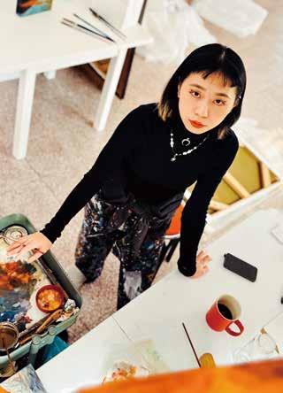 身為高敏感族群,能較深入的感受敏感之人所受到來自社會的壓迫。 創作後期已經將主體延伸到曾有痛苦感受的人群。因我相信,無論是何種出 身、個性或者是社會經驗的不同,每個人一定都有其所需要面對的課題, 因 此身而為人最重要的是,如何在不斷的嘗試及摸索中,透過經驗來理解並篩 選與自身相吸相斥的人事物,藉此找到最舒適的平衡。再優秀的特長,沒有 發揮在對的地方也會顯得吃力及難受萬分。如〈不適之地 - 1 〉中所繪,即使 是熱情之人,如果長期處於內傾者居多的群體,也會受困其中而不敢於釋放 自己的能量,長久下來反而會因鬱悶而痛苦。〈不適之地