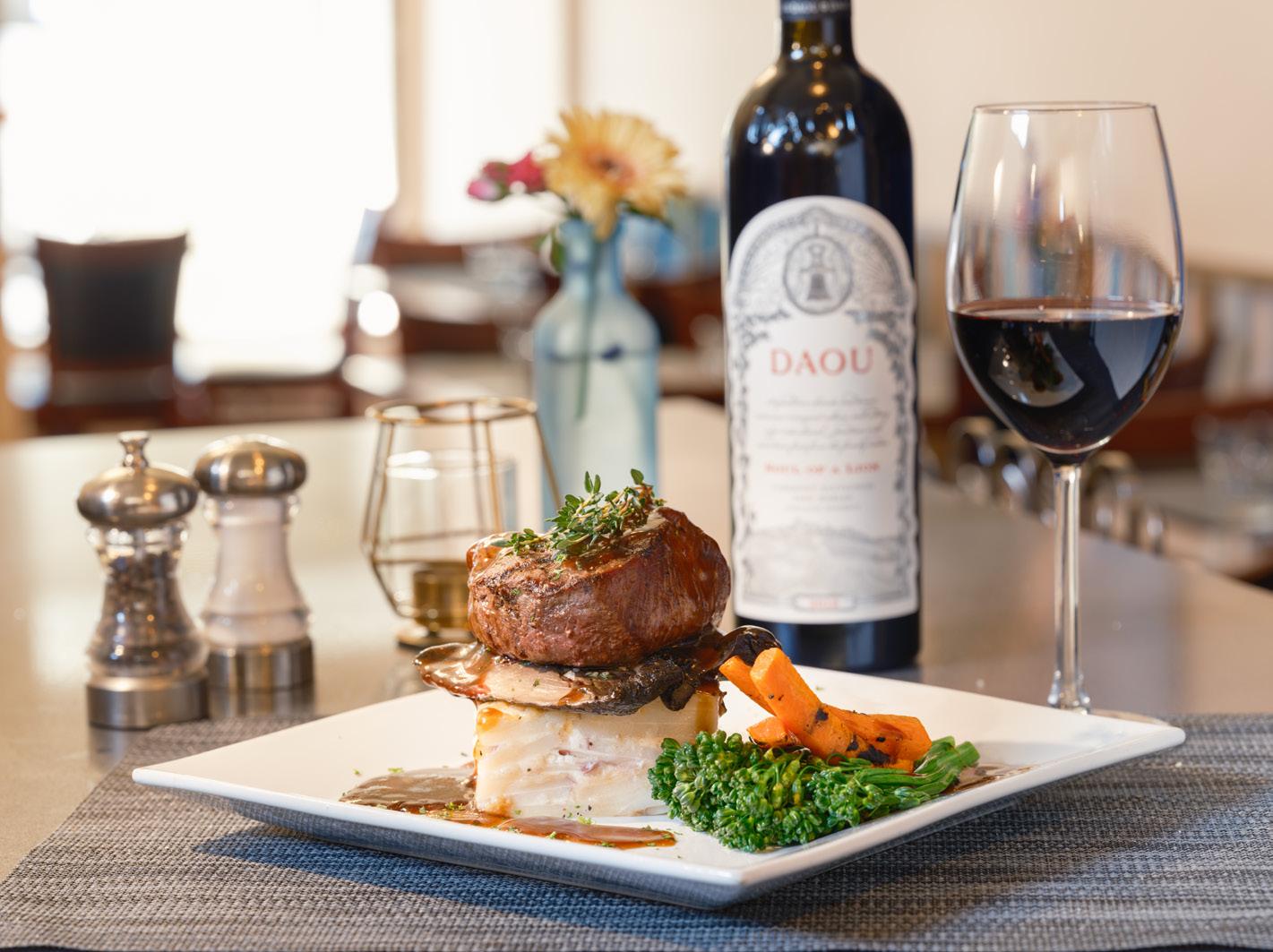 Two of The Estate’s three accommodations will be familiar to longtime Wine Country visitors. Hotel Villagio, on the south side of Yountville, is a county favorite, with 111 modern guest rooms and a postcard-worthy swimming pool made for drinking rosé in the sun. The expansive lobby and common areas recently received a glamorous makeover into a swank, convivial space with live music and entertainment. On the north side of town, Vintage House, with 79 rooms housed in leafy, bungalowstyle buildings, has a more private and romantic atmosphere. Both properties, though different in style, embody the ethos of approachable luxury in the beauty of their surroundings, level of service, and attention to guests’ needs and comfort.