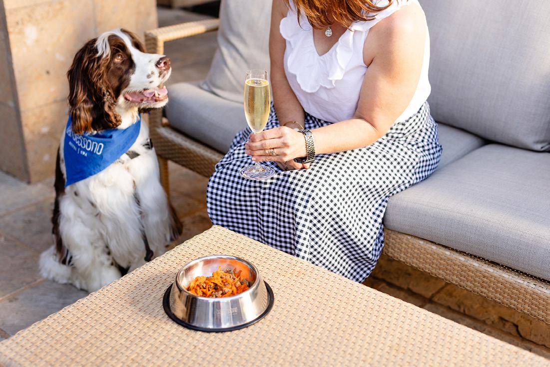 On our last evening, we dined at Bardessono’s Lucy Restaurant and Bar, and our furry companions were treated royally. The Barkessono menu (dog menu) featured signature caninefriendly fare; Rosie and Pepper’s favorites were Baker’s bacon & spinach and Mary’s chicken & rice. Knowing the dogs were eating as decadently as we were heightened our enjoyment.