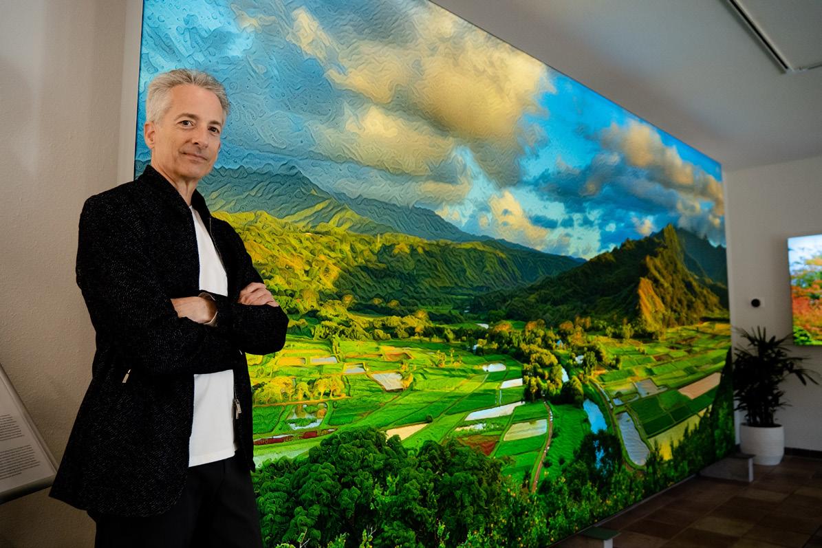 Since he arrived in the United States from Bedfordshire, England, in 2003, Simon Bull’s vibrant art has turned heads, leading to partnerships with Muhammad Ali and the Salt Lake City 2002 Winter Olympics. Now, this innovative artist is displaying his fresh approach to fine art at his two Meuse Gallery locations: on Main Street in St. Helena and at the corner of Ocean Avenue and Monte Verde Street in Carmel-by-the-Sea. Bull recently offered a live painting “Art Spectacular” in St. Helena to introduce art lovers of all ages to the dazzling performance of his art.