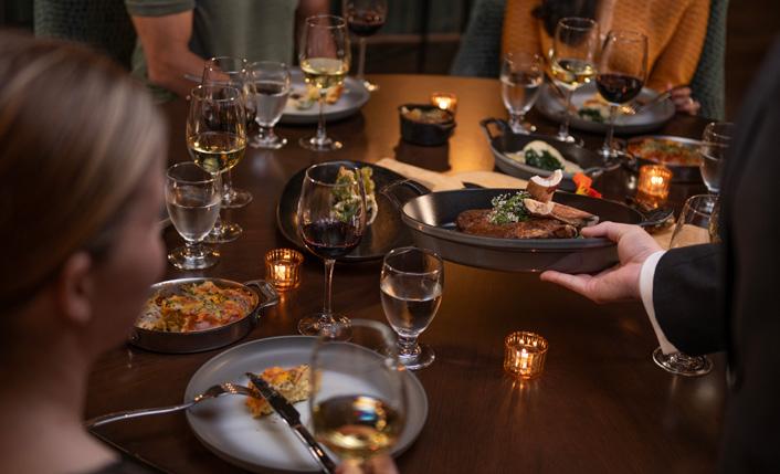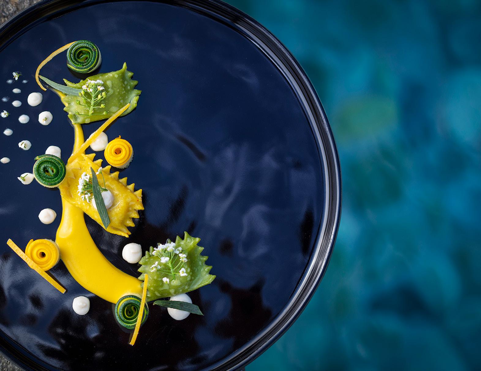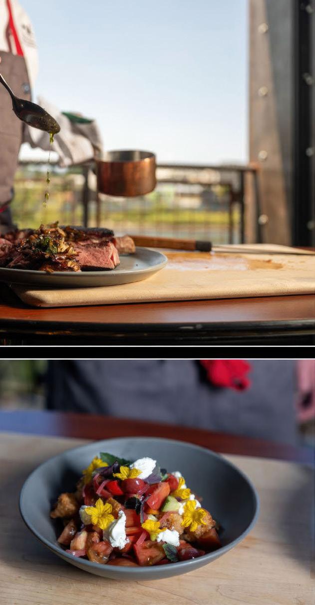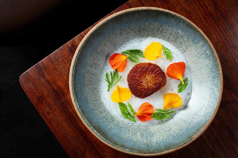 rooms. “We take great care and pride in ensuring that every dish is infused with the essence of the Central Coast—including sourcing from an array of local farmers, fishermen, foragers, and purveyors, and operating our own garden on-site,” explains Agustin. “The dramatic cliffs and expansive ocean views inspire me daily, pushing me to create culinary moments that honor and reflect this stunning landscape. We use ethically sourced, sustainable ingredients, including fresh Pacific seafood and foraged herbs, to craft signature dishes like our abalone.”